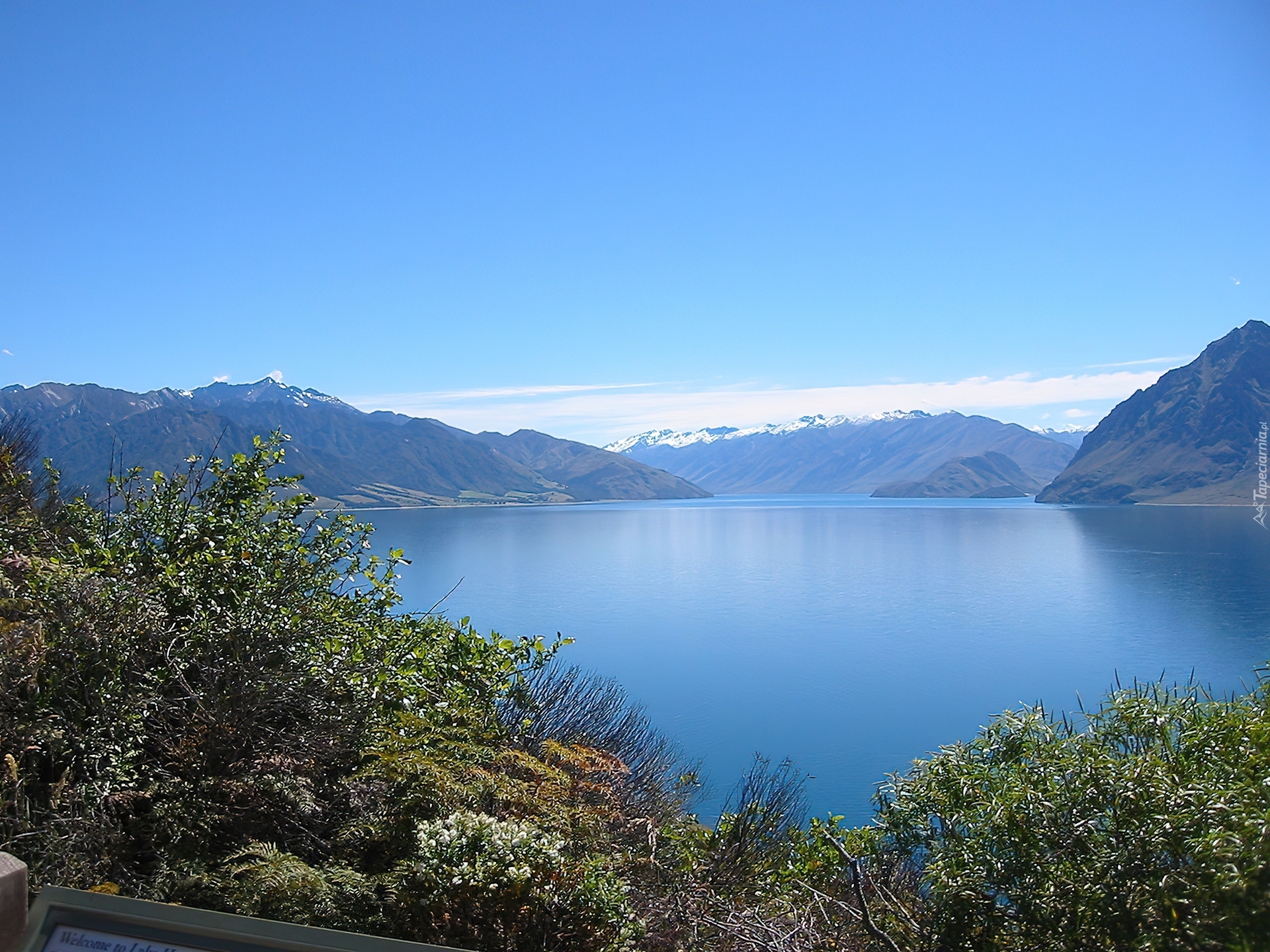 Edytor tapety: Jezioro, Góry, Roślinność, Hawea, Nowa Zelandia