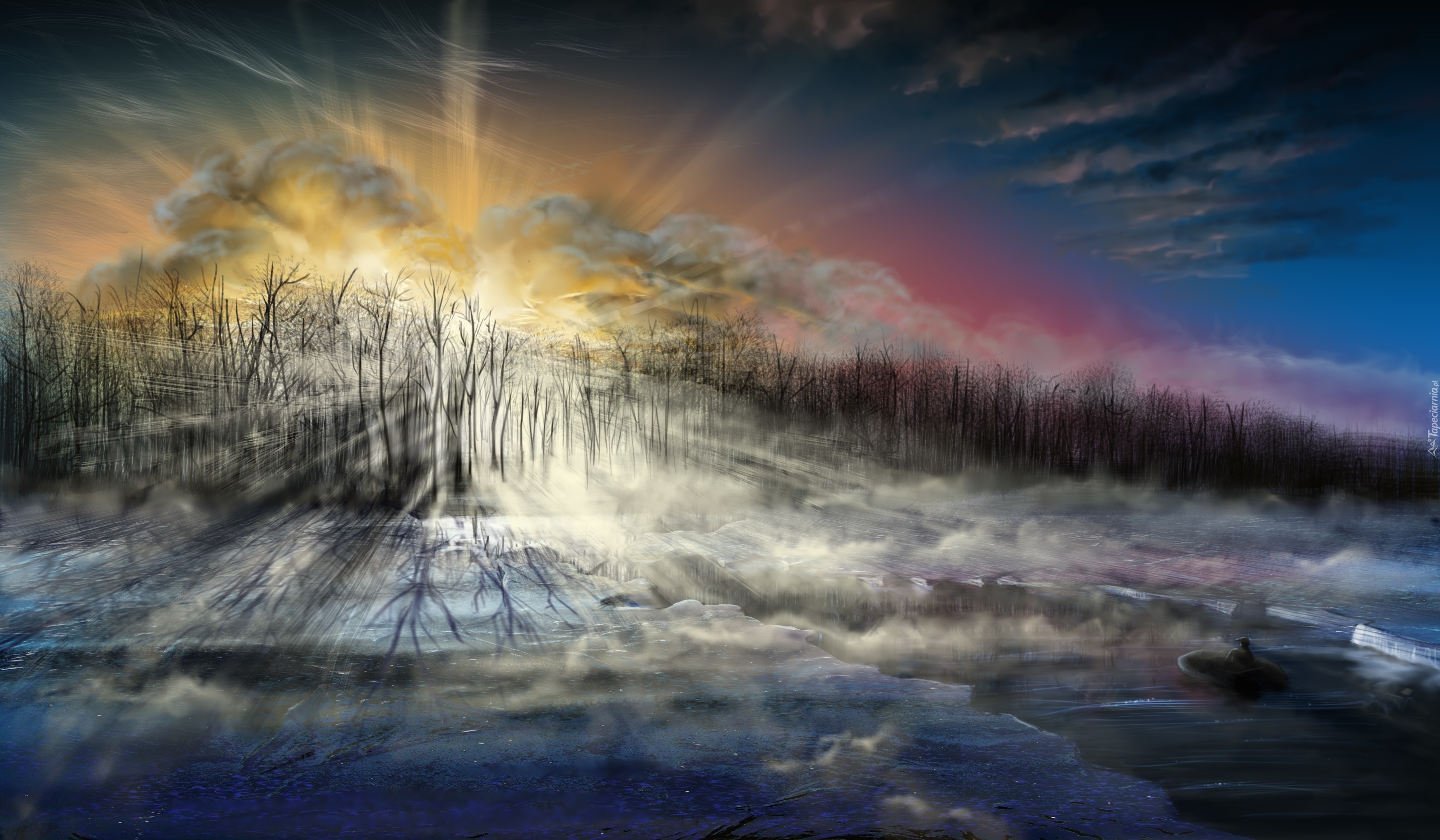 Edytor tapety: Promienie, Słońca, Chmury, Trawy