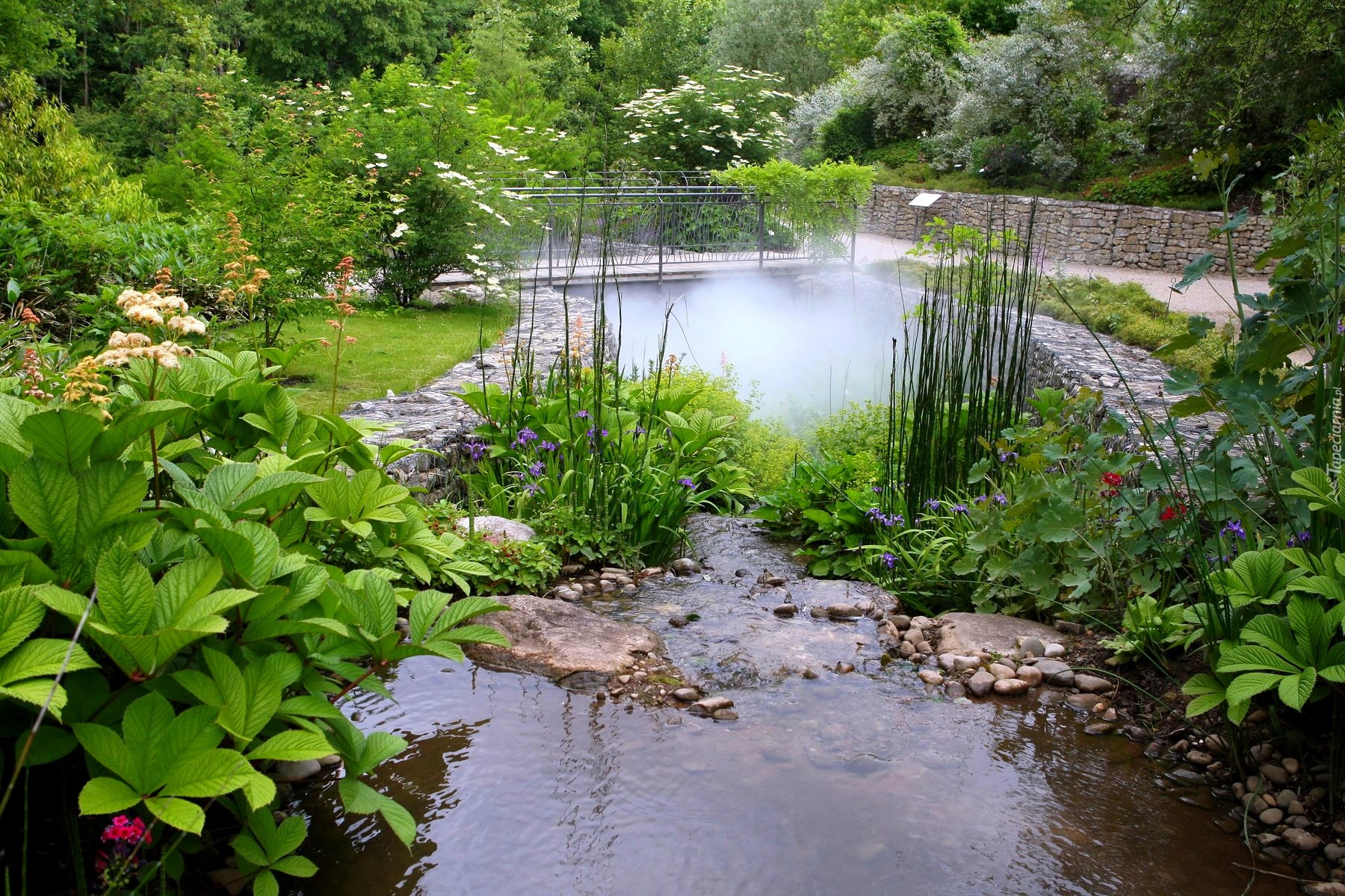 Edytor tapety: Ogród, Sadzawka, Rośliny, Kwiaty