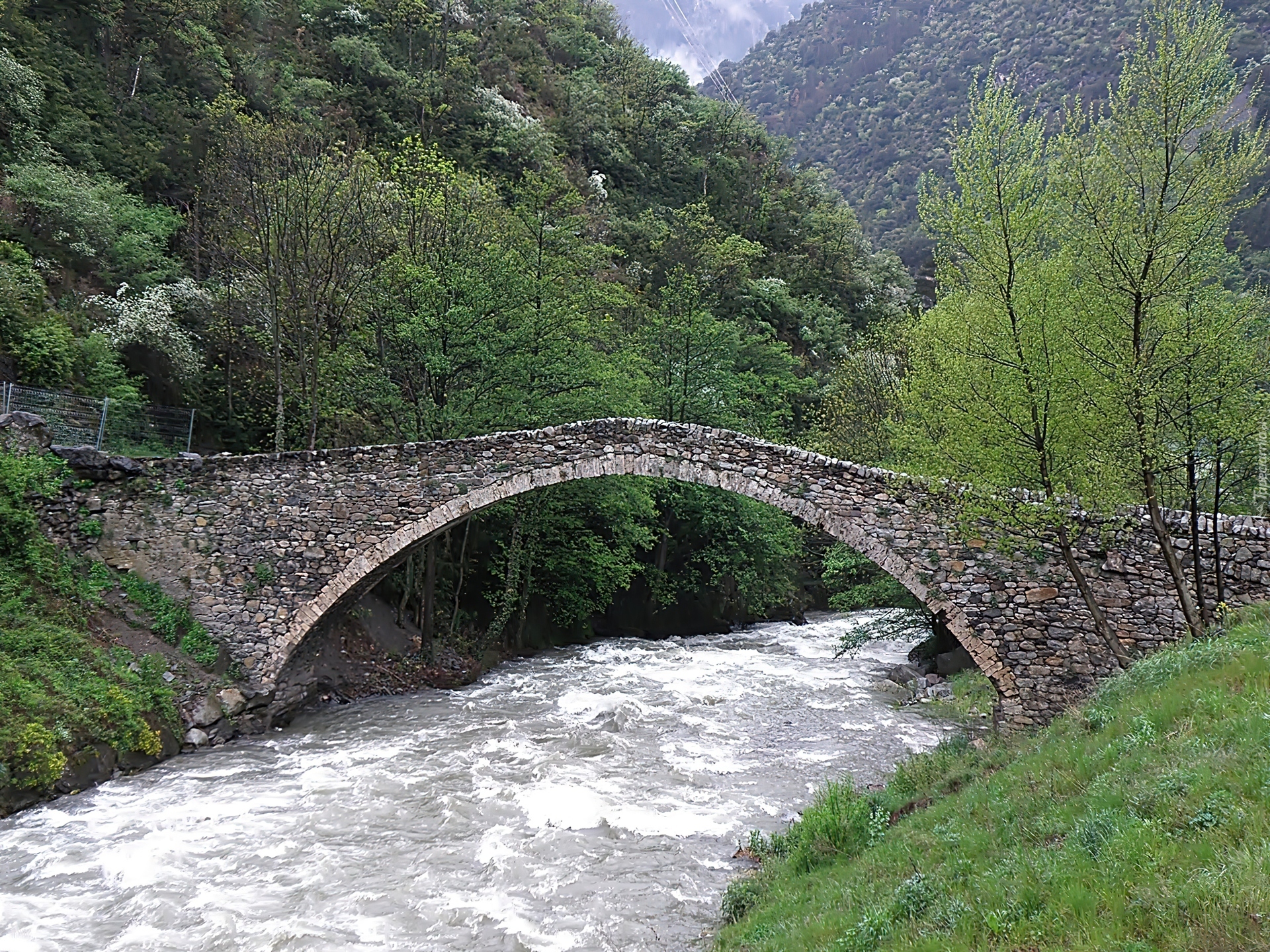 Edytor tapety: Andora, Pireneje, Las, Rzeka, Valira, Kamienny, Mostek