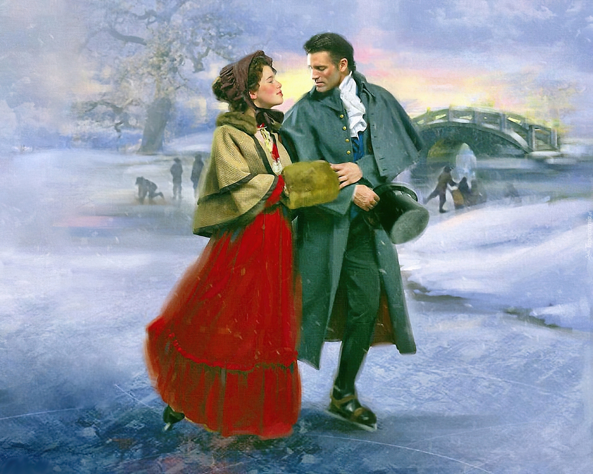 Edytor tapety: Kobieta, Mężczyzna, Lodowisko, Zima