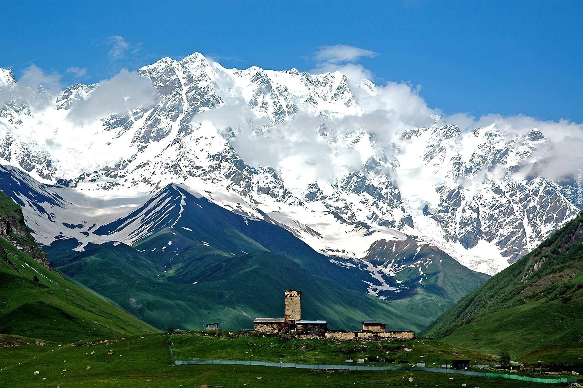 Edytor tapety: Góry, Śnieg, Zabudowy, Gruzja