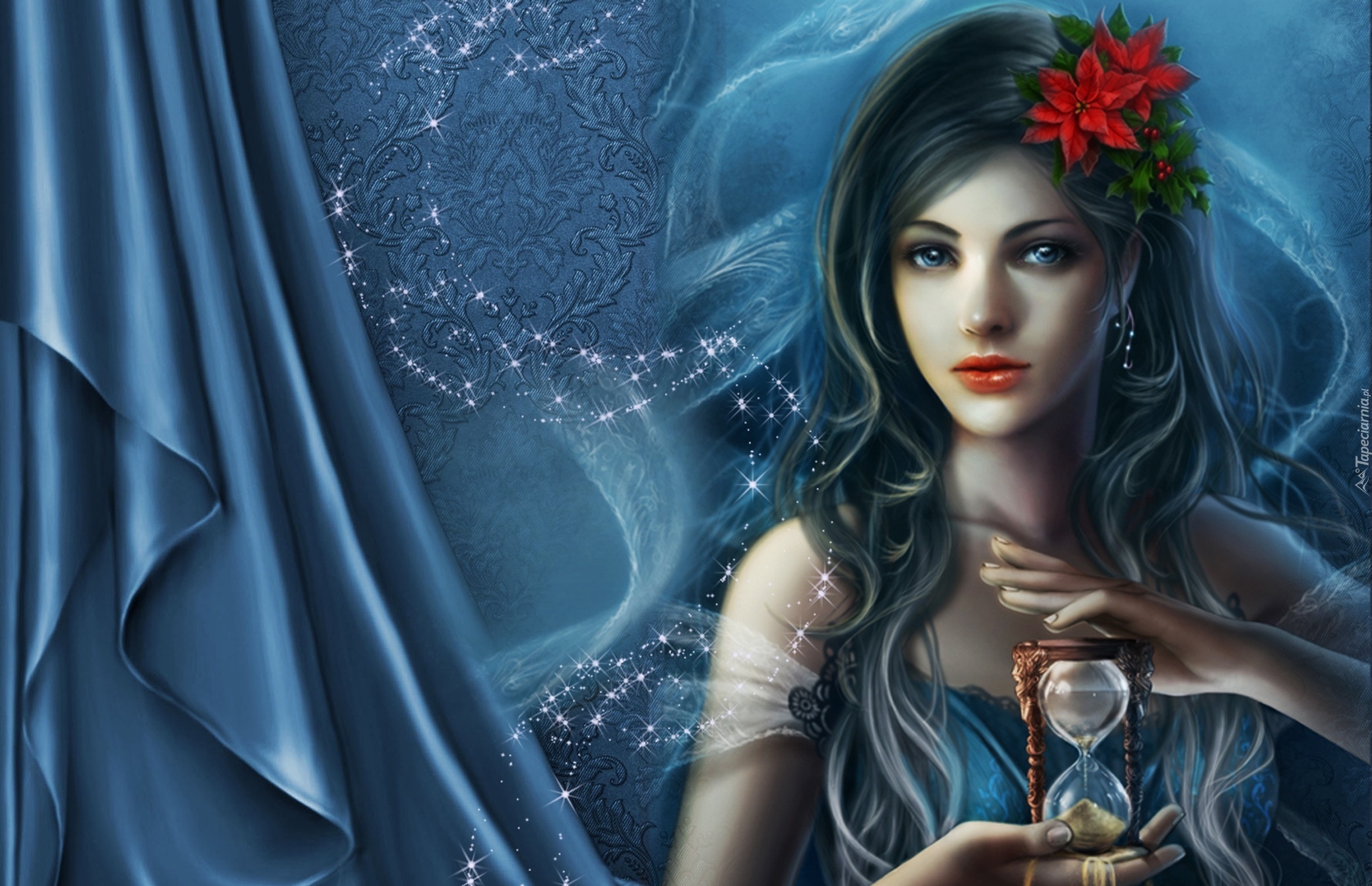 Edytor tapety: Kobieta, Kwiatek, Klepsydra