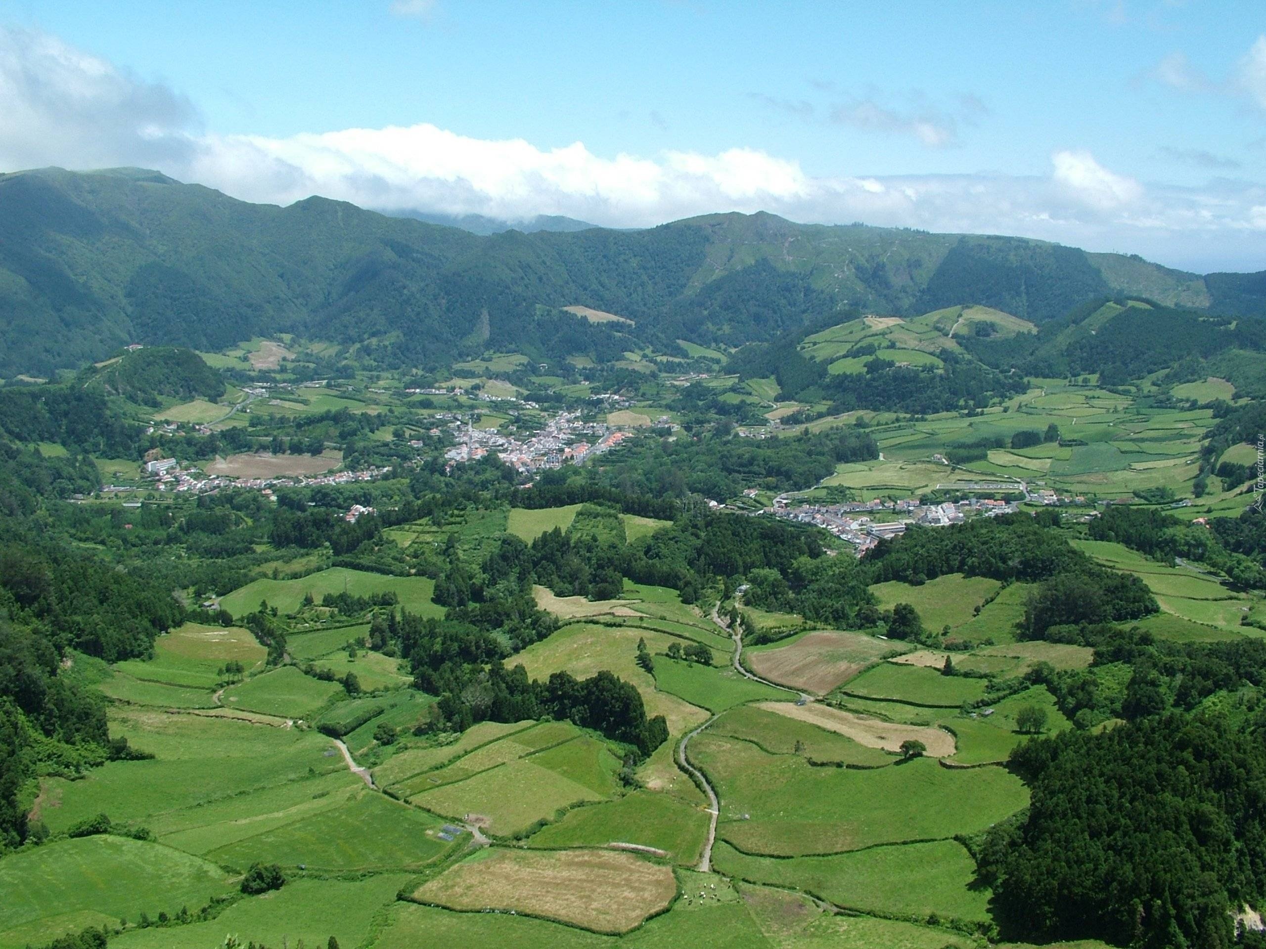 Edytor tapety: Pola, Uprawne, Lasy, Domy, Azory, Portugalia