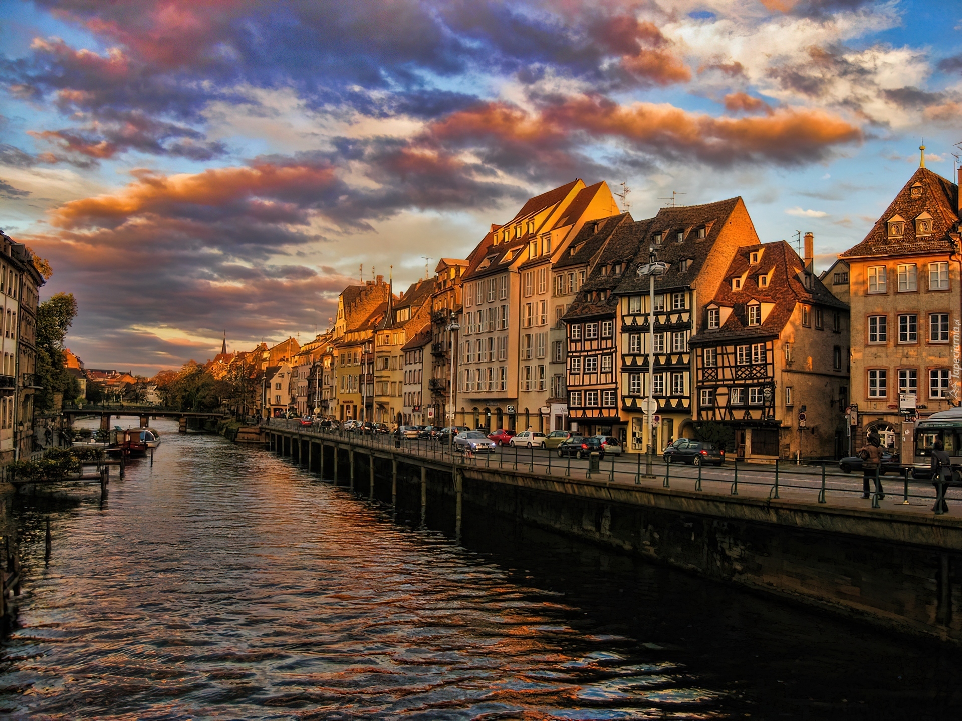 Edytor tapety: Strasburg, Rzeka, Ill, Kamienice, Zachód, Słońca