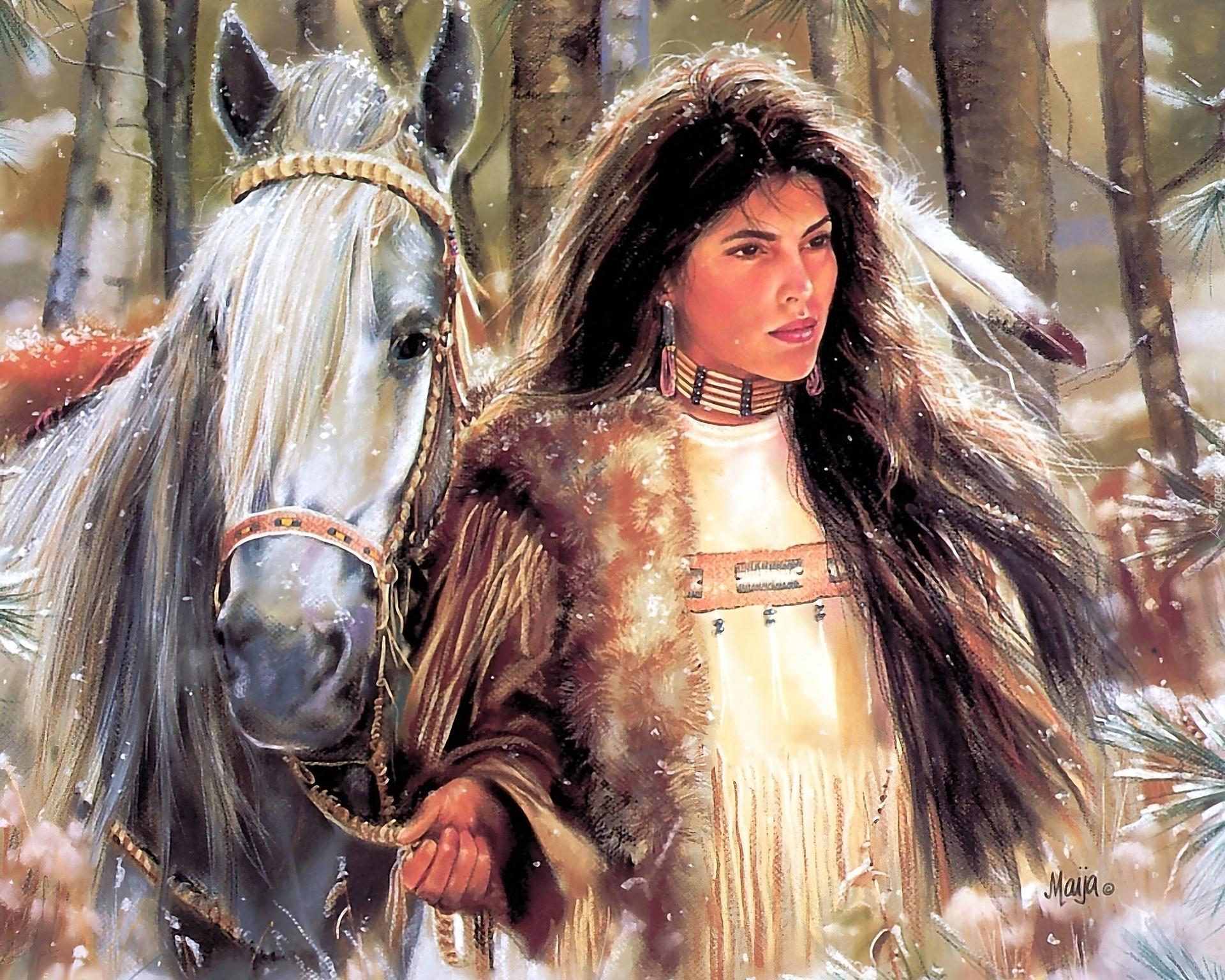 Edytor tapety: Dziewczyna, Indianka, Koń