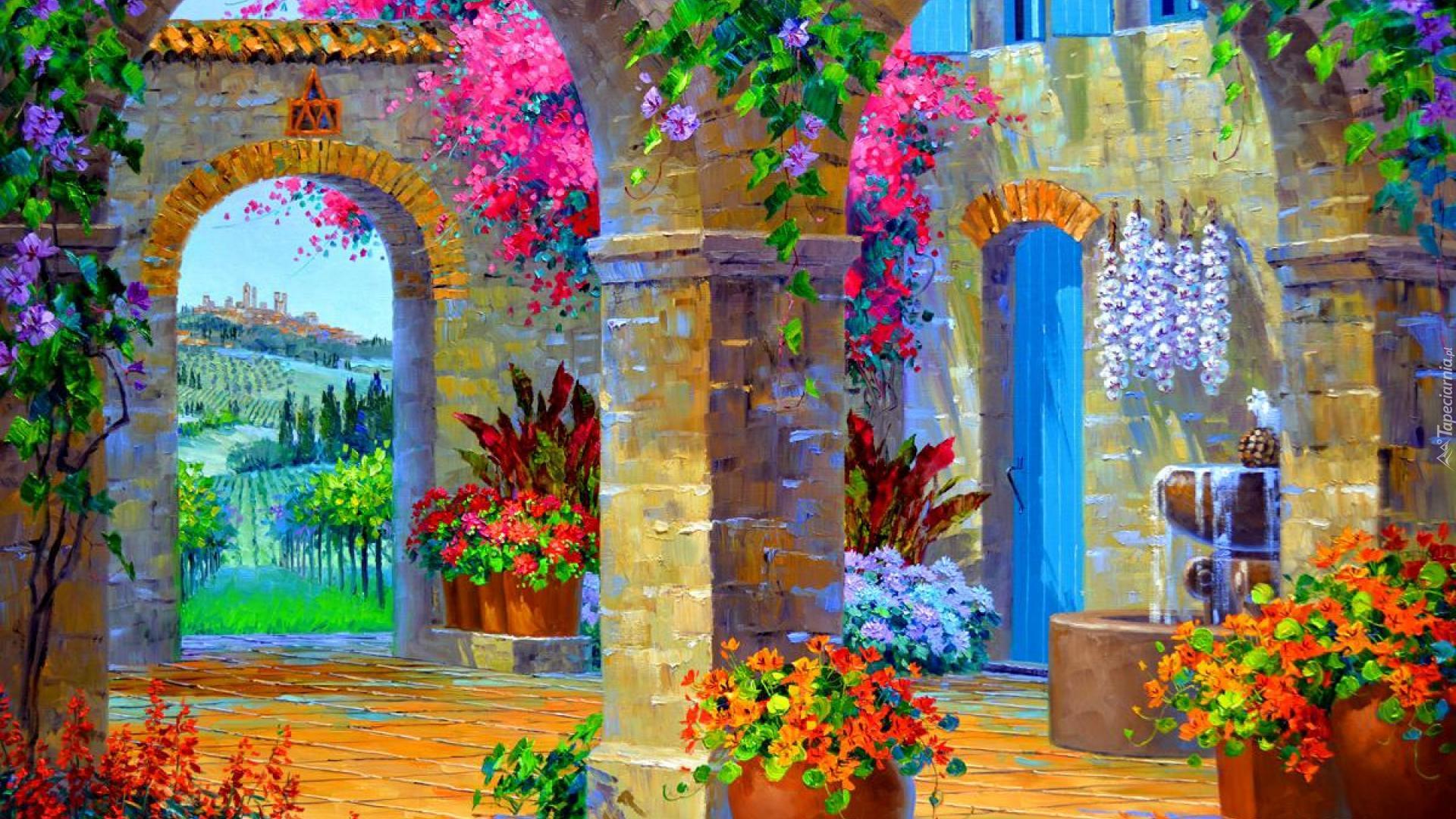 Edytor tapety: Dom, Tarasy, Patio, Kwiaty, Łuki
