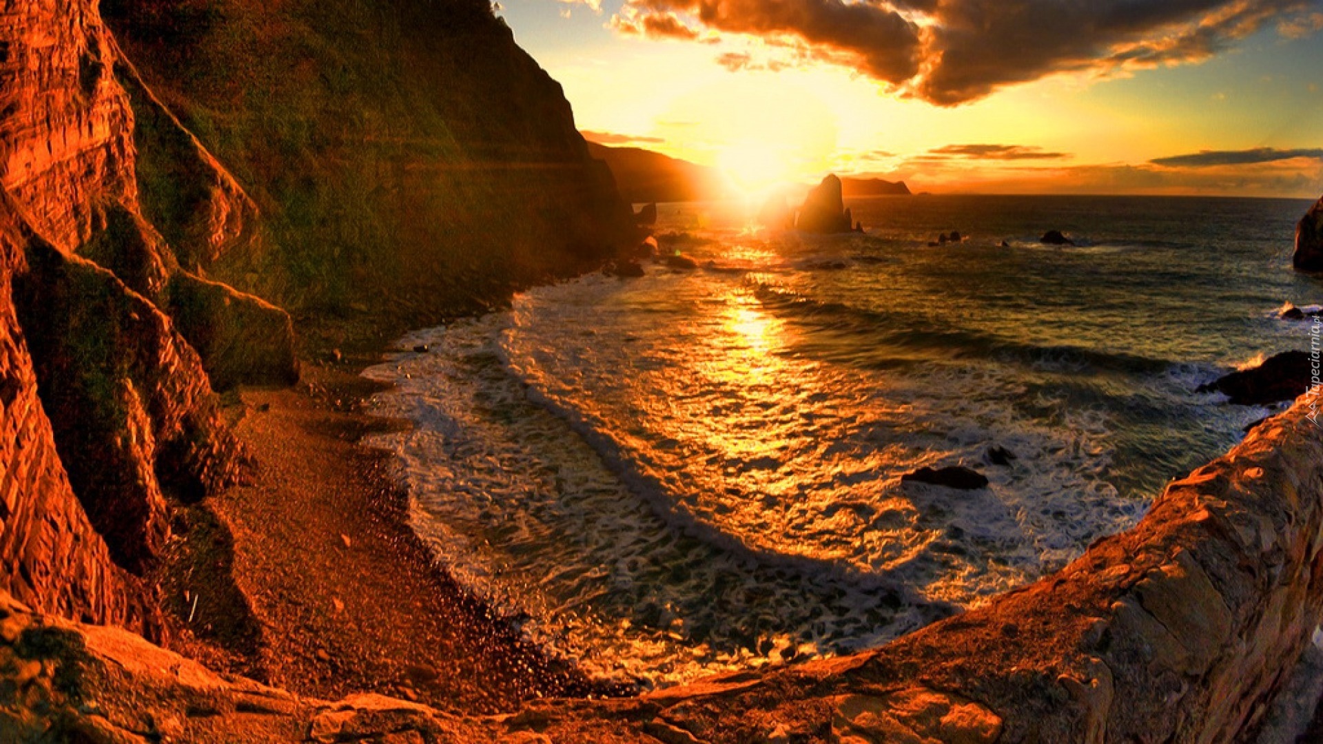 Edytor tapety: Skały, Morze, Wybrzeże, Zachód, Słońca