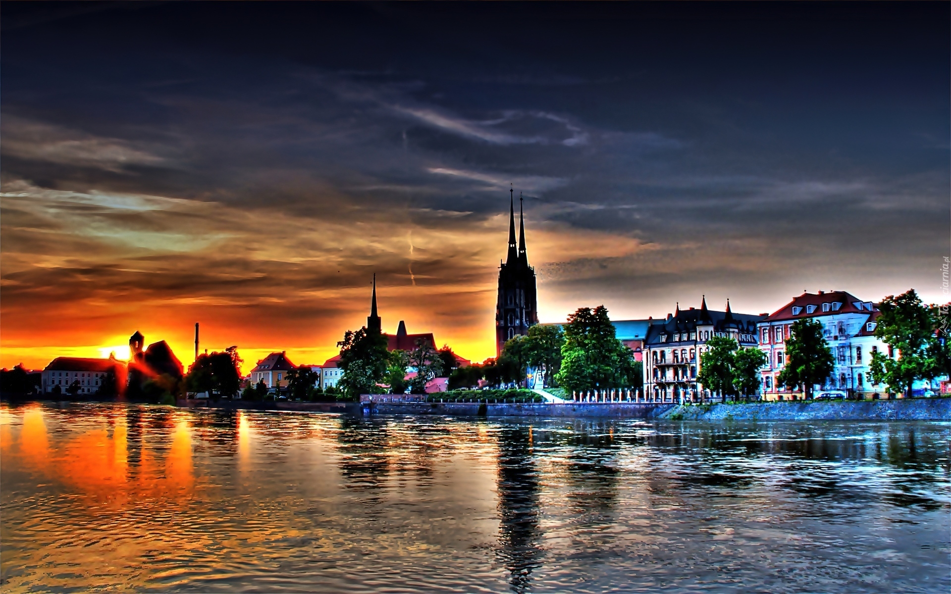 Edytor tapety: Wrocław, Zachód, Słońca, Odra, Widok, Ostrowa, Tumskiego