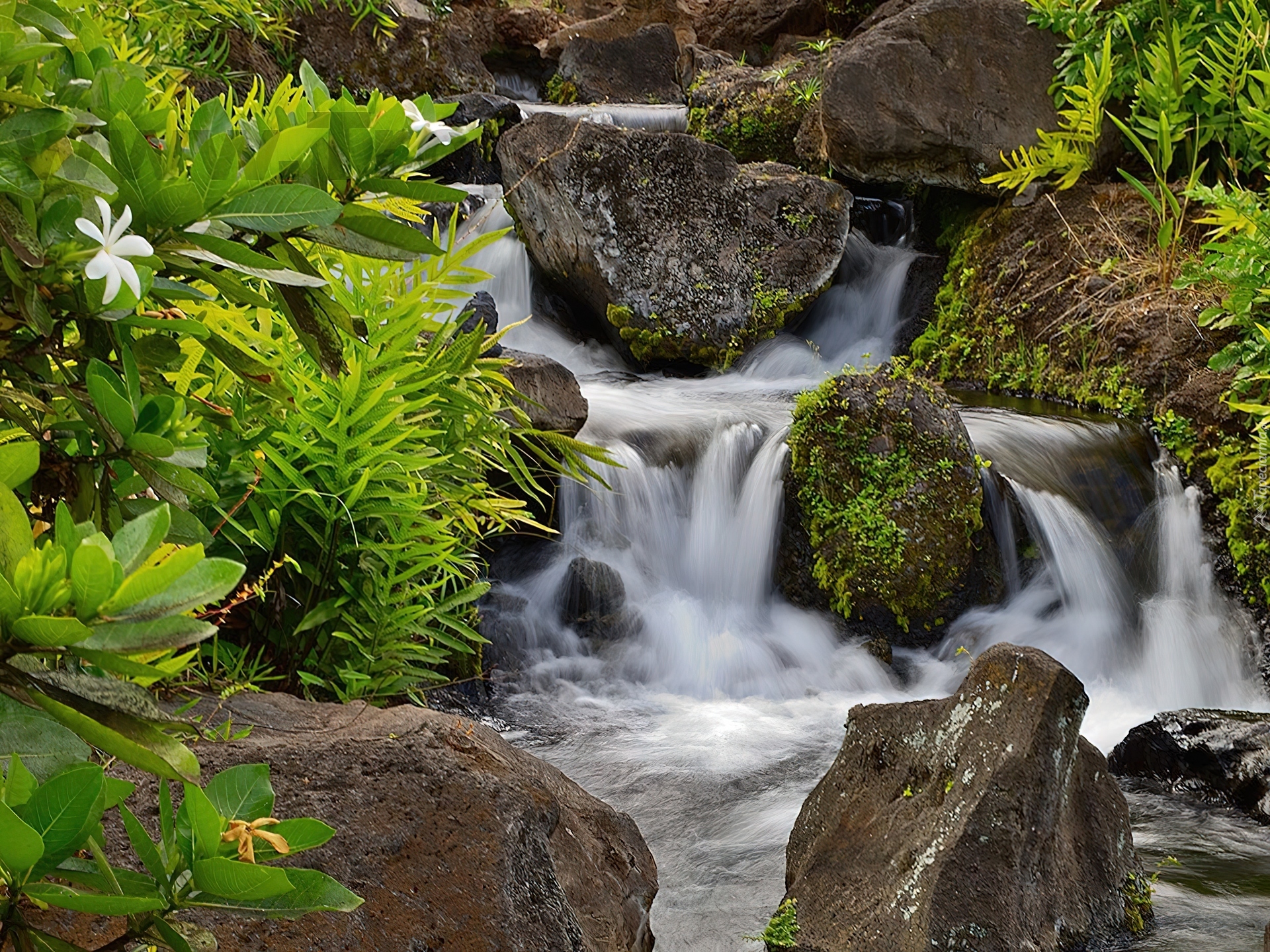 Edytor tapety: Wodospad, Kamienie, Roślinność