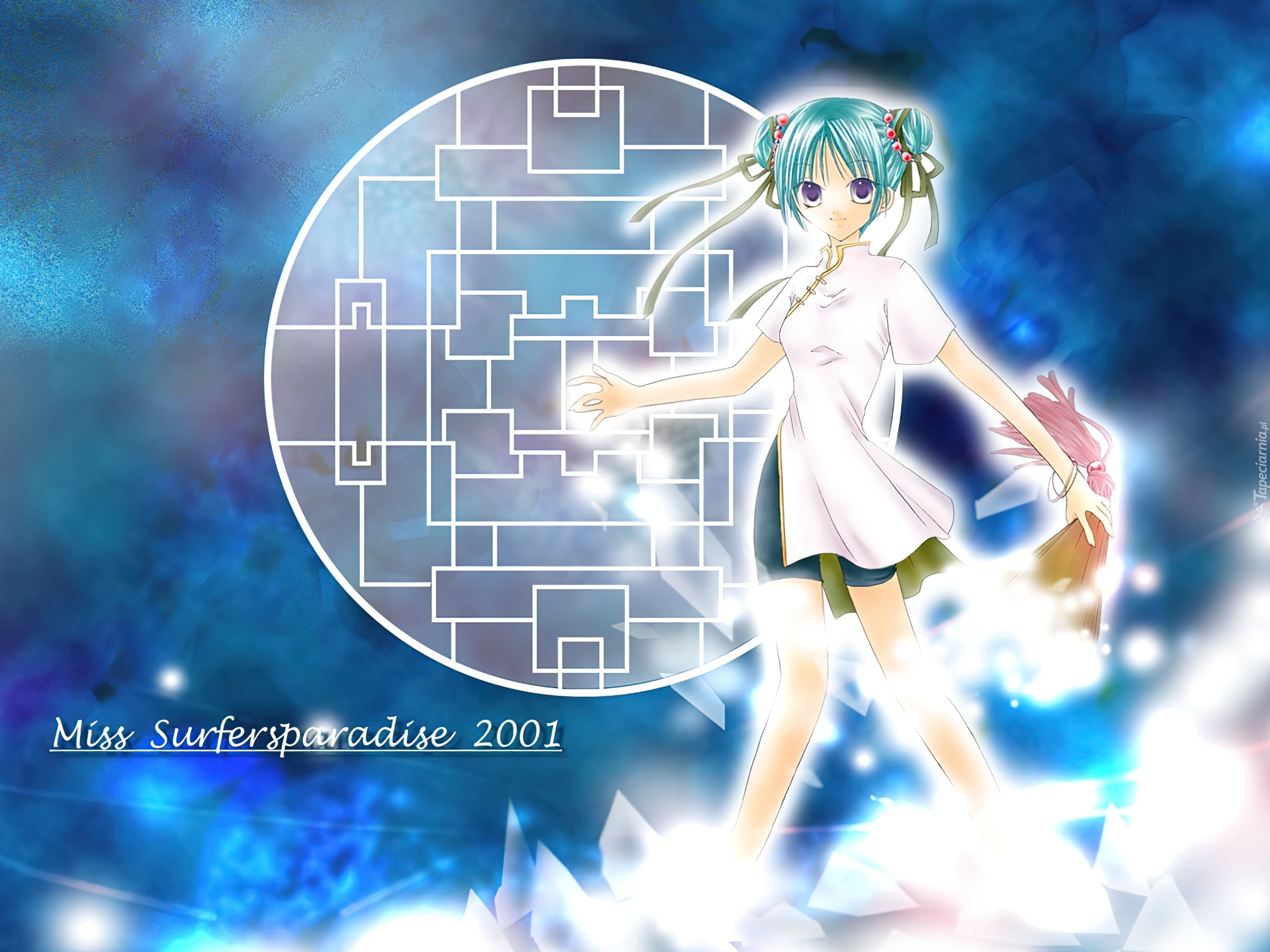 Edytor tapety: Miss Surfersparadise, okrąg, turkusowe włosy