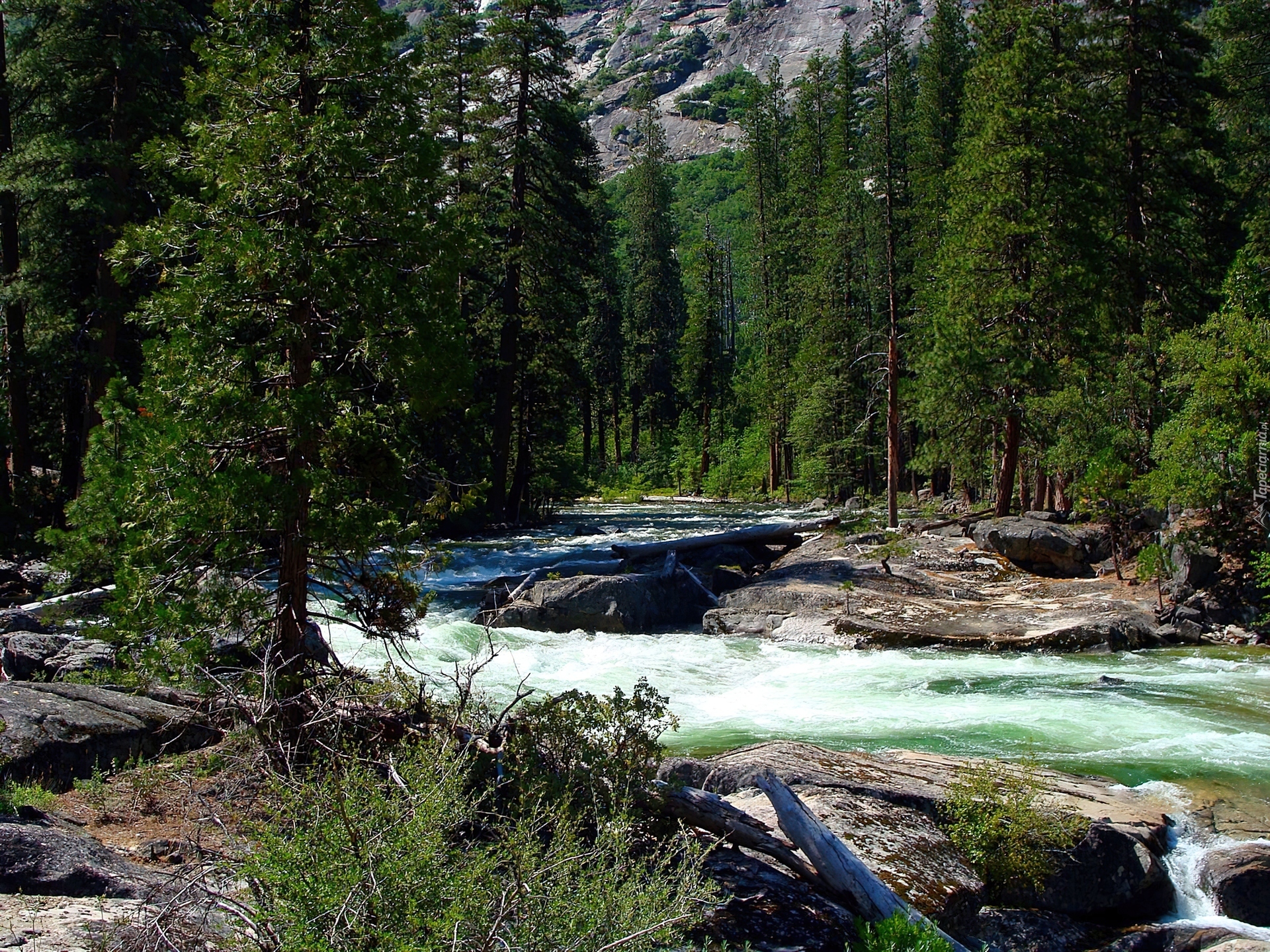 Edytor tapety: Stany Zjednoczone, Stan Kalifornia, Park Narodowy Yosemite, Las, Rzeka