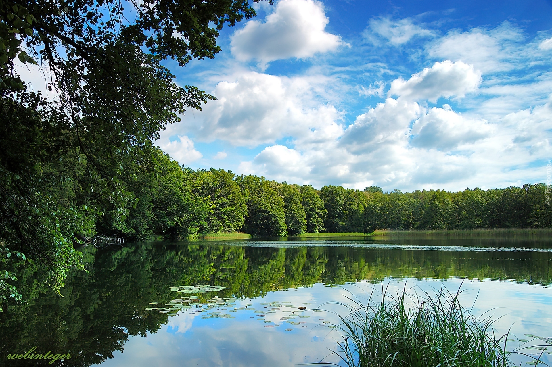 Edytor tapety: Jezioro, Las, Chmury, Odbicie
