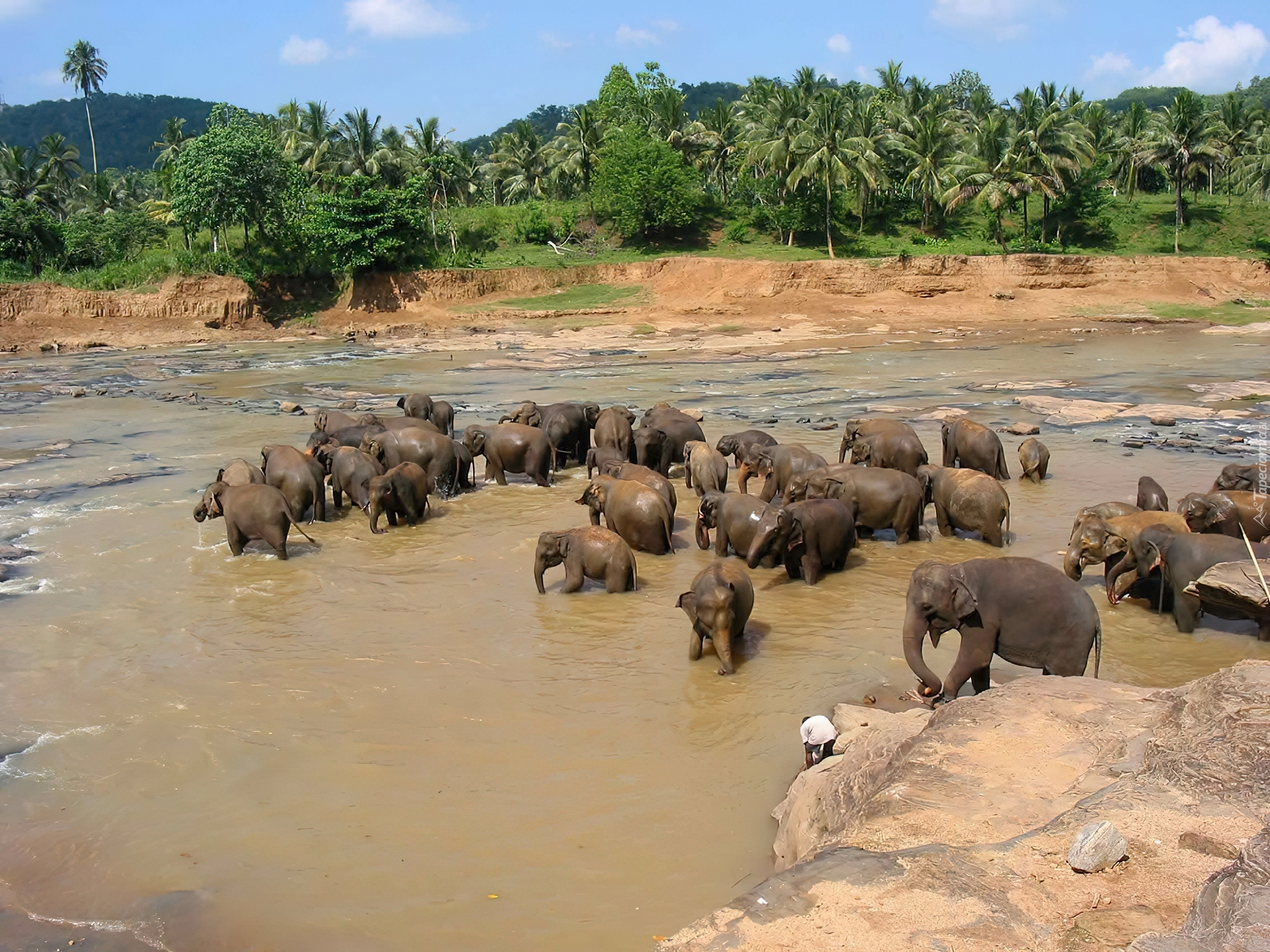 Edytor tapety: Słonie, Rzeka, Kąpiel, Sri Lanka