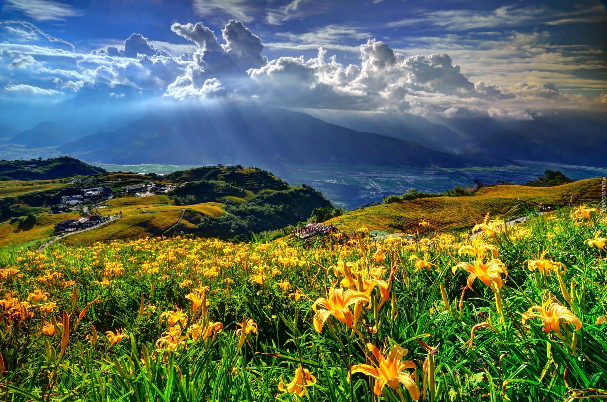 Edytor tapety: Góry, Chmury, Kwiaty