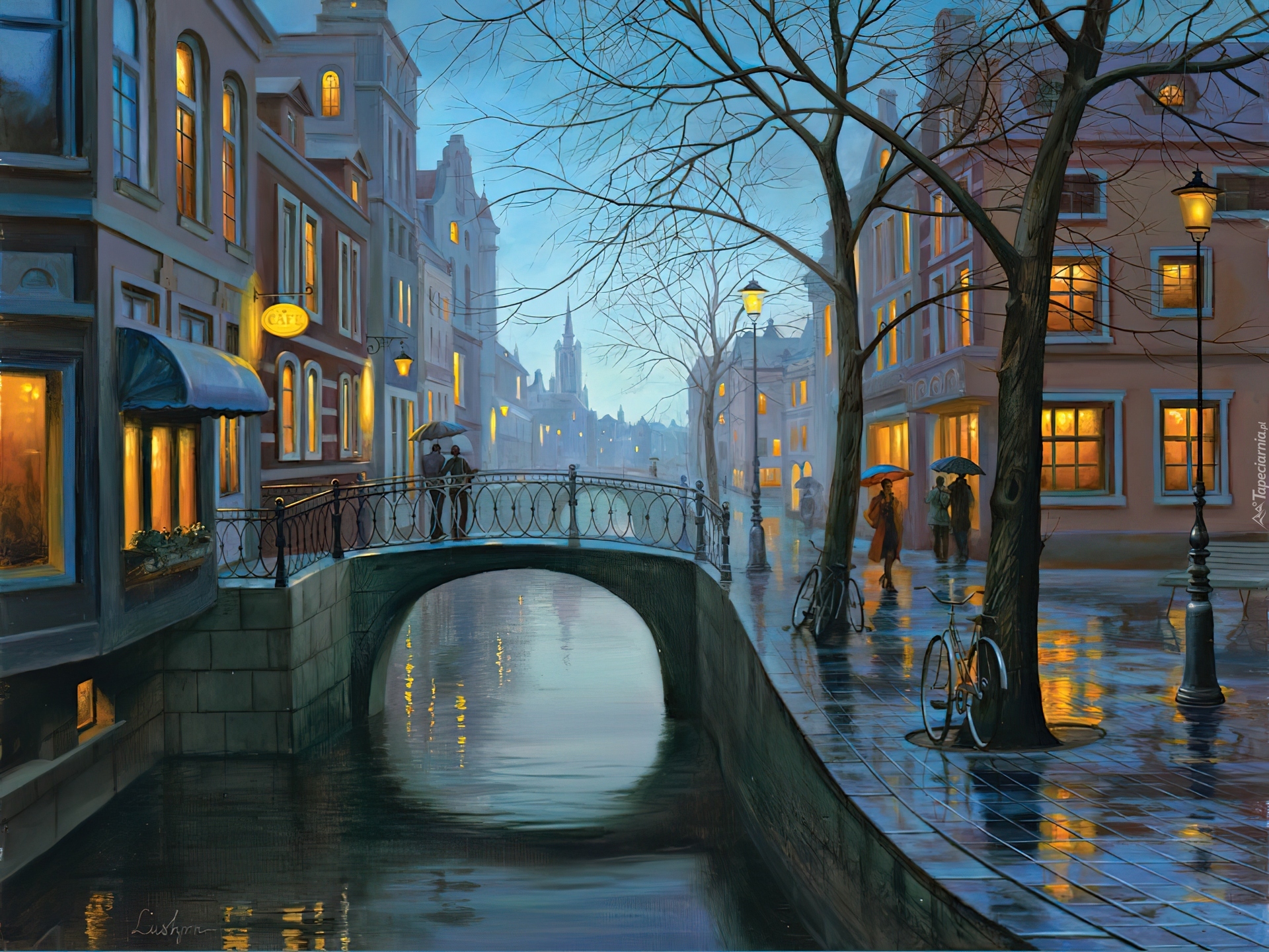 Edytor tapety: Miasto, Ulica, Domy, Rzeka, Most
