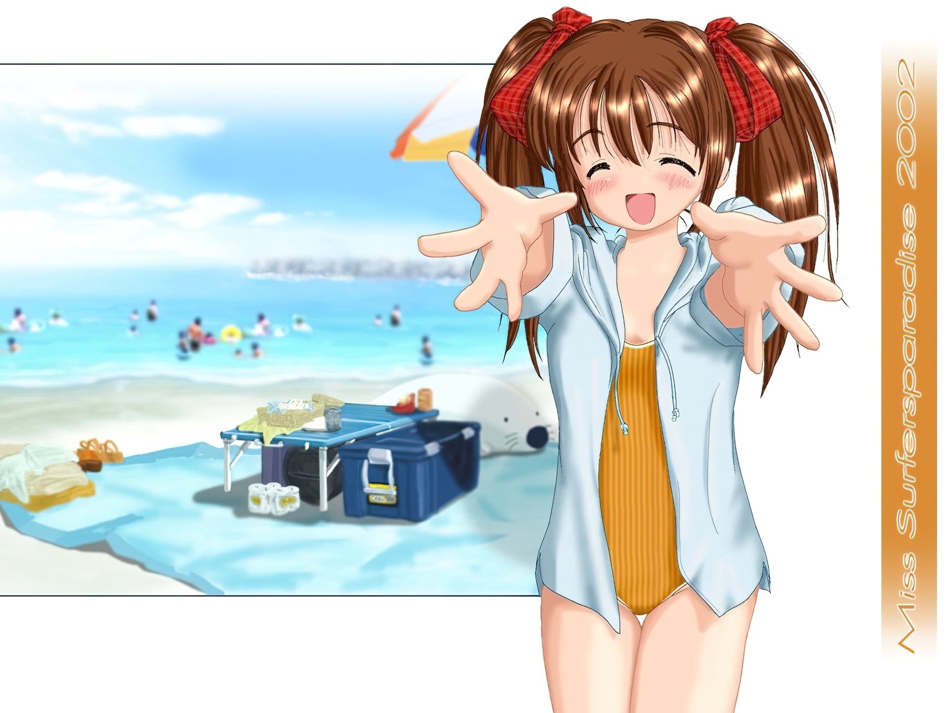 Edytor tapety: Miss Surfersparadise, plaża, koc