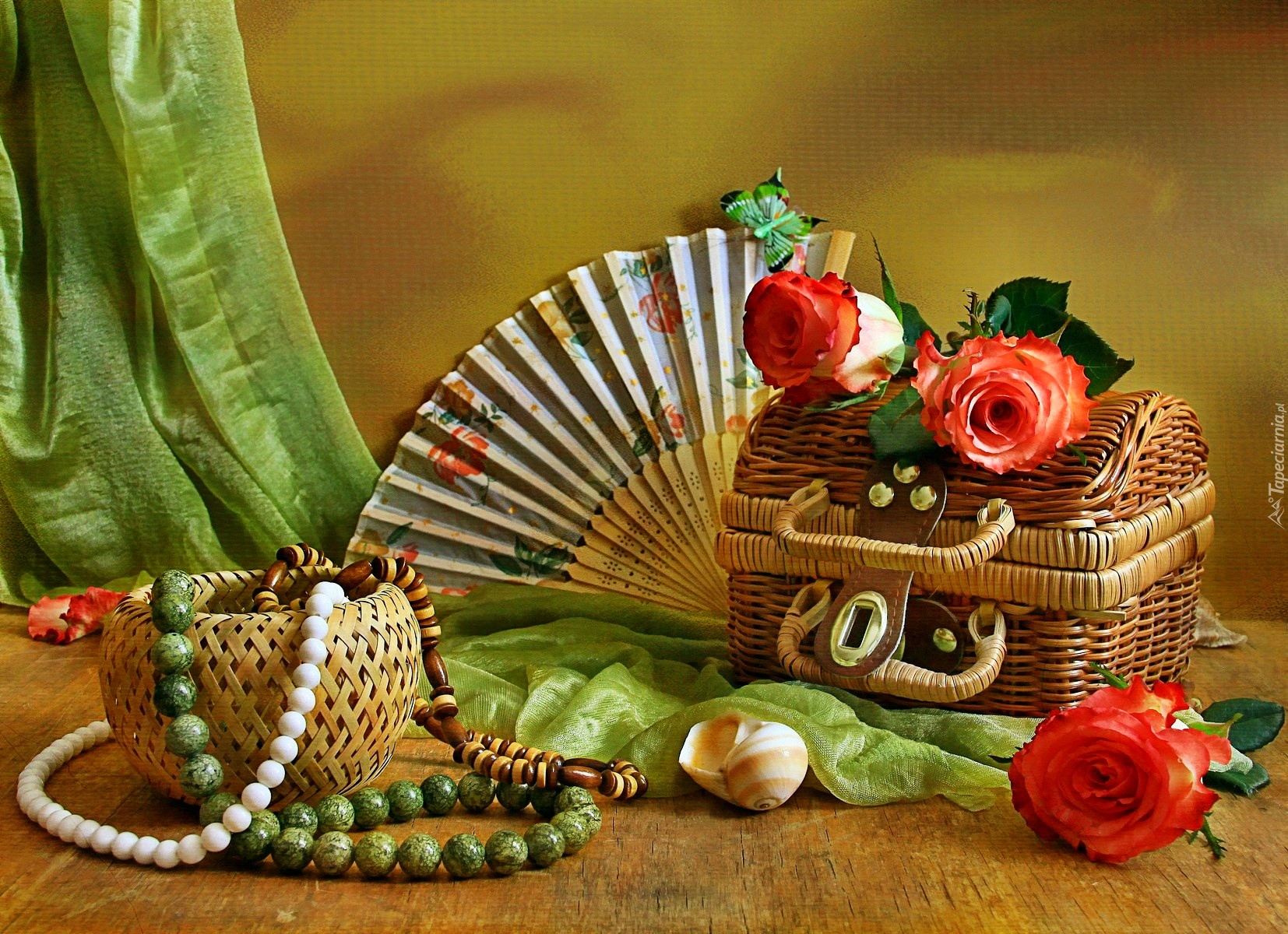 Edytor tapety: Róże, Korale, Wachlarz, Kompozycja
