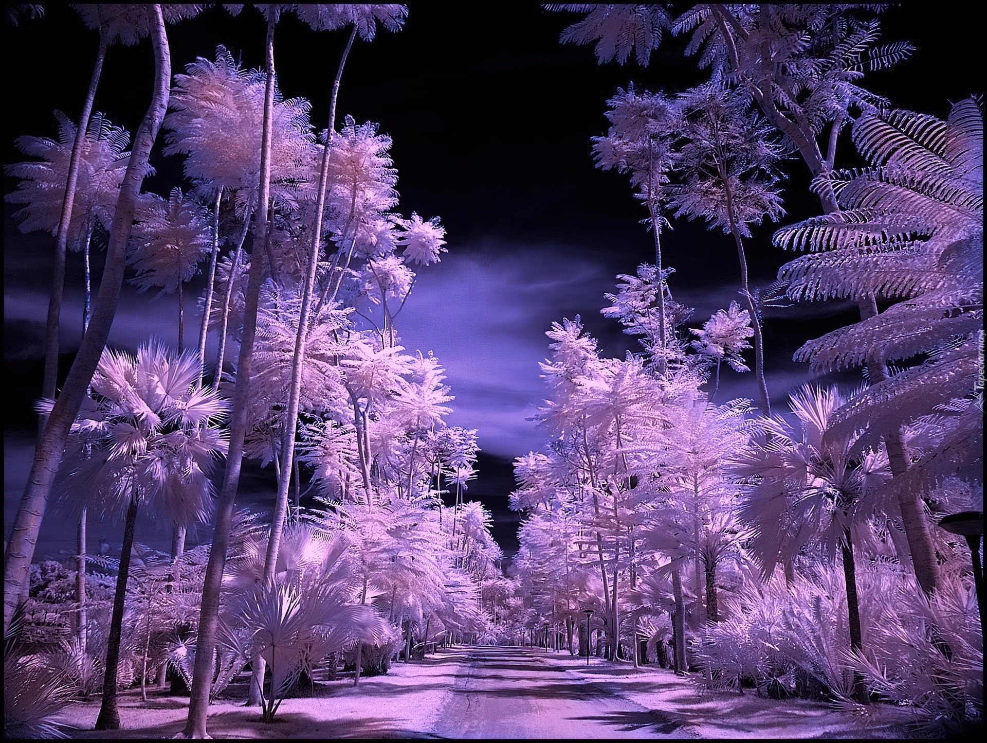 Edytor tapety: Noc, Poświata, Droga, Palmy