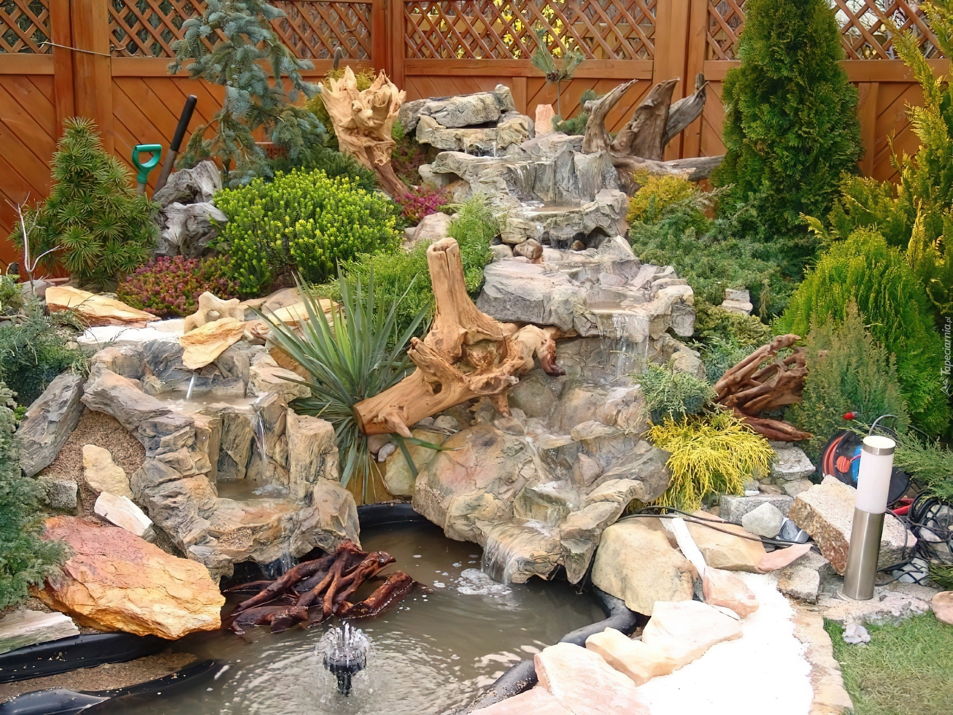Edytor tapety: Ogród, Oczko, Wodne, Skalniak, Parkan