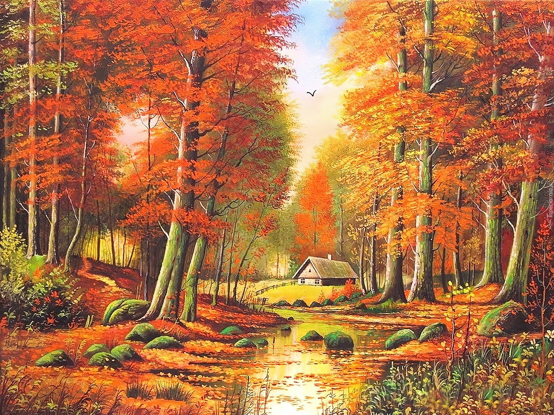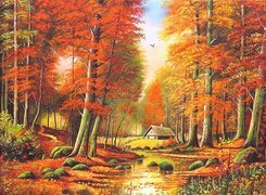 Edytor tapety: Dom, Las, Rzeka, Jesień