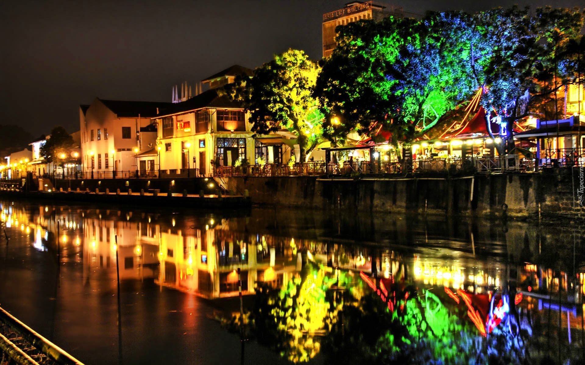 Edytor tapety: Malezja, Malakka, Panorama, Miasta, Nocą, Odbicie