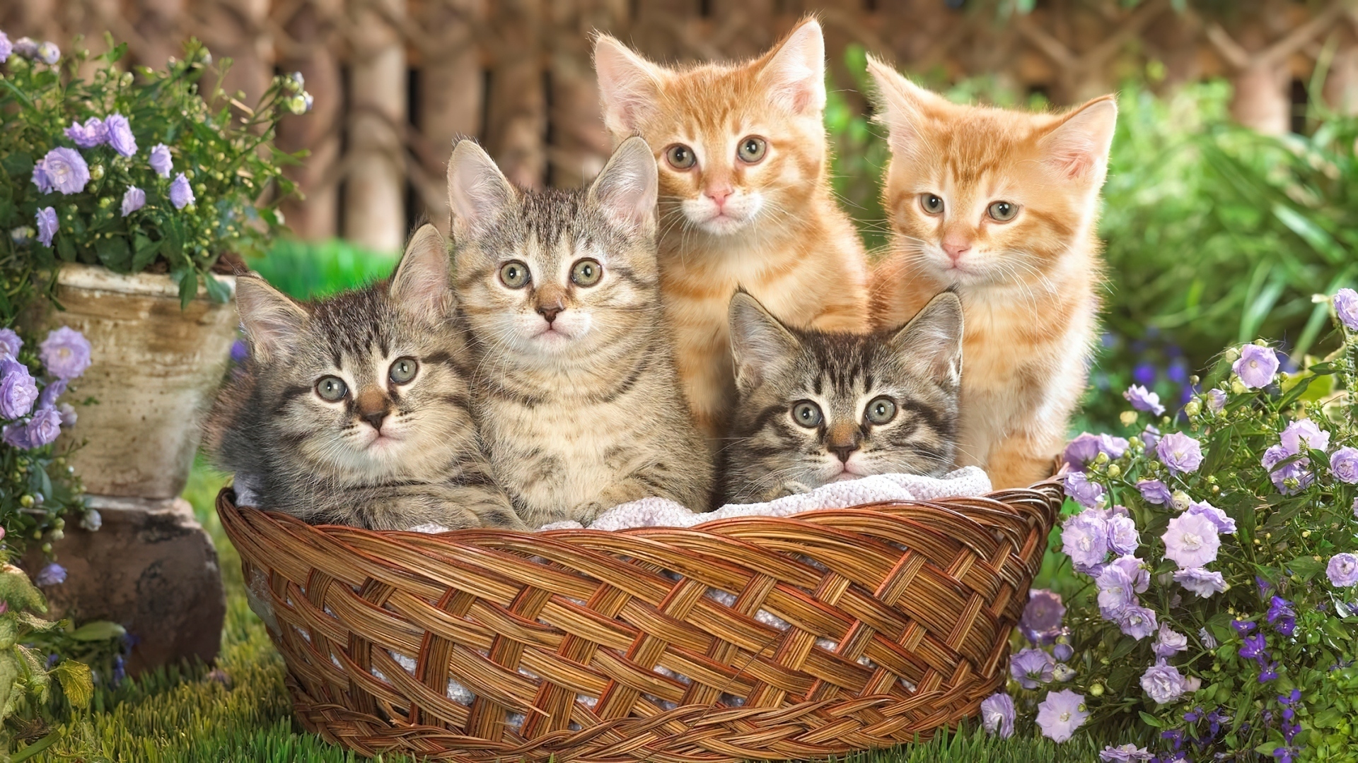 Edytor tapety: Pięć, Kotków, Koszyk, Kwiatki