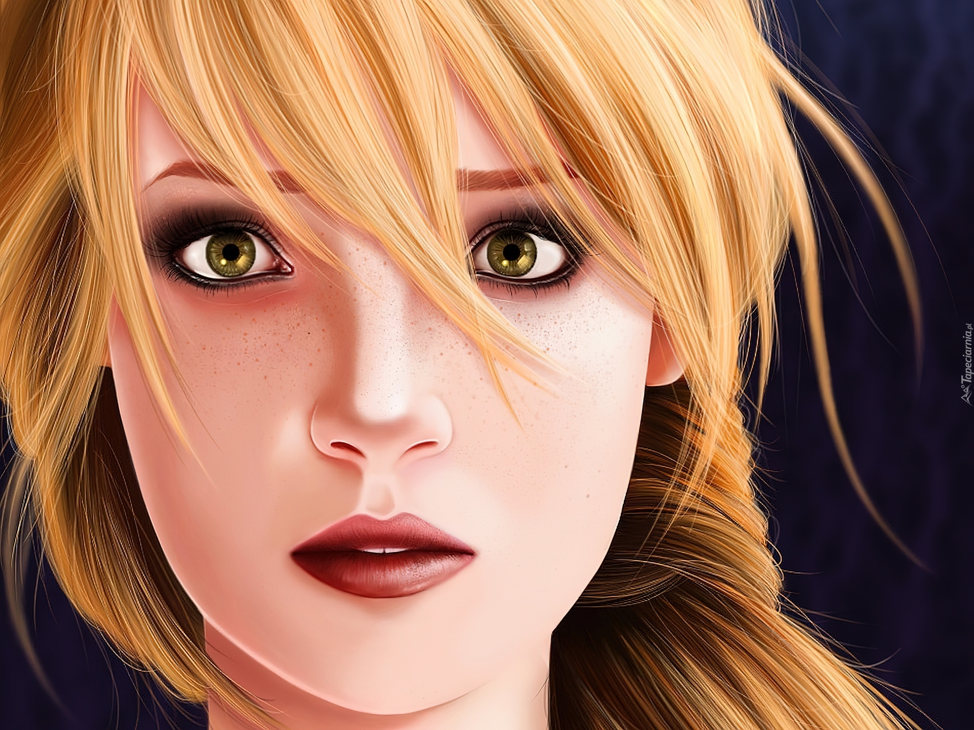 Edytor tapety: Kobieta, Warkocz, Zielone, Oczy