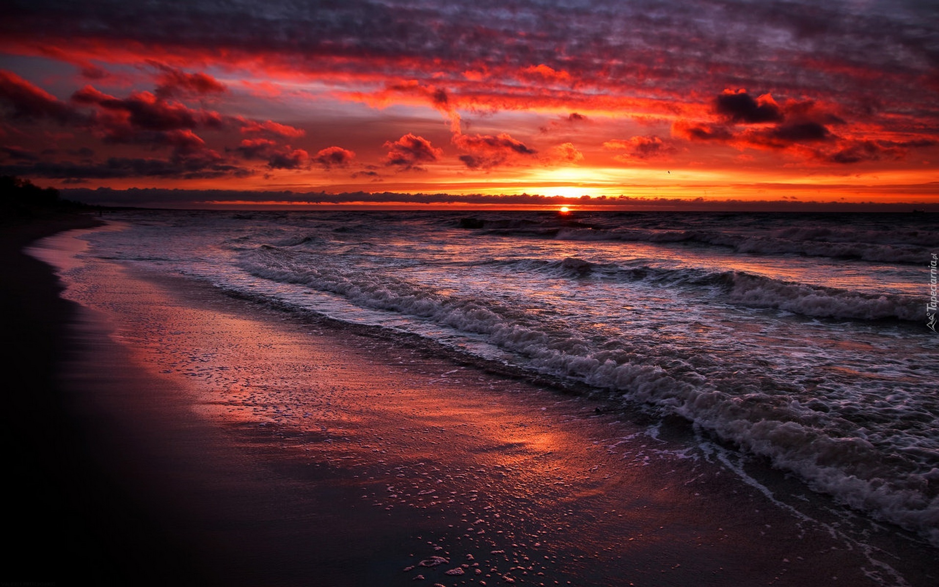 Edytor tapety: Zachód, Słońca, Morze, Plaża