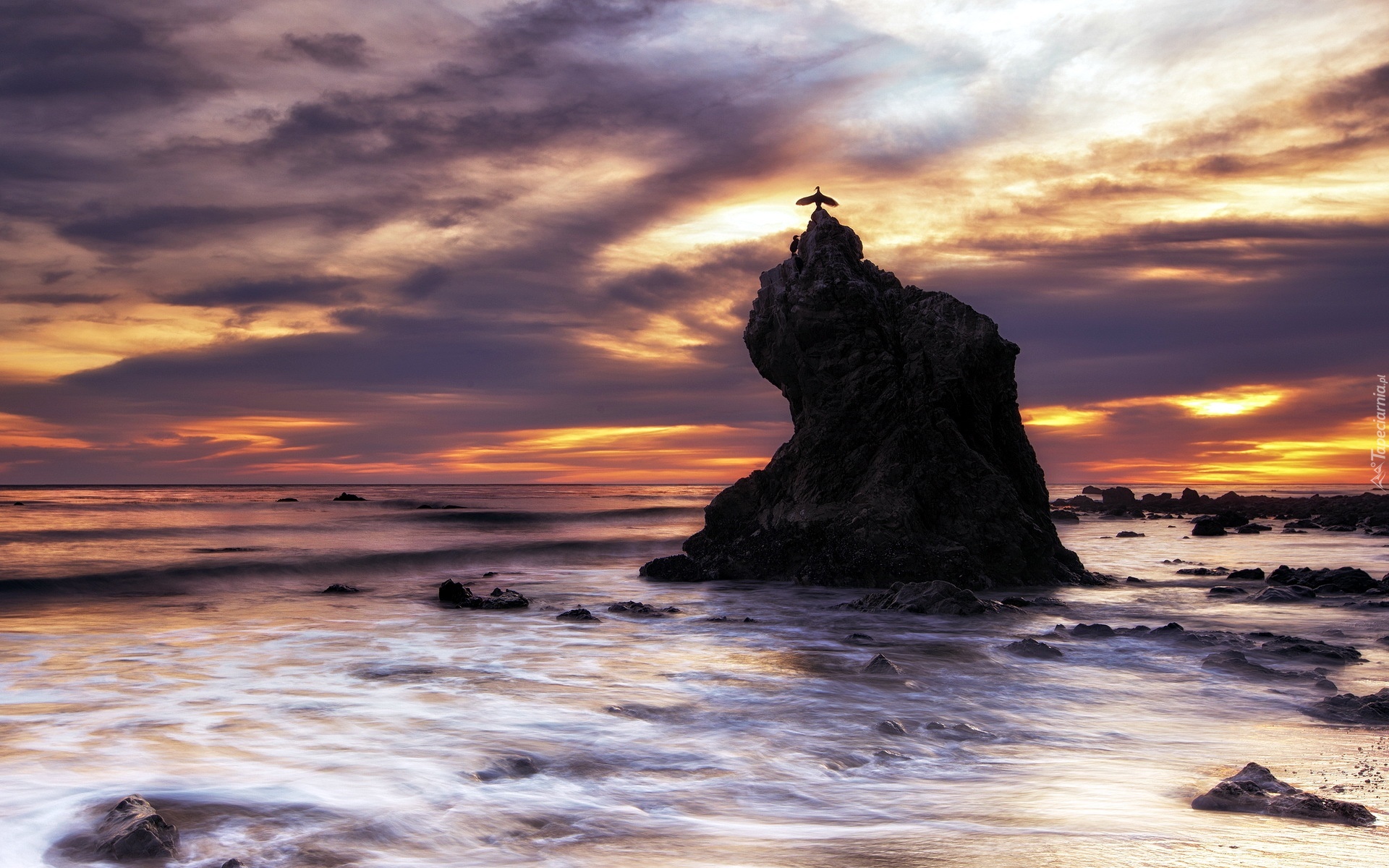 Edytor tapety: Zachód, Słońca, Skała, Morze