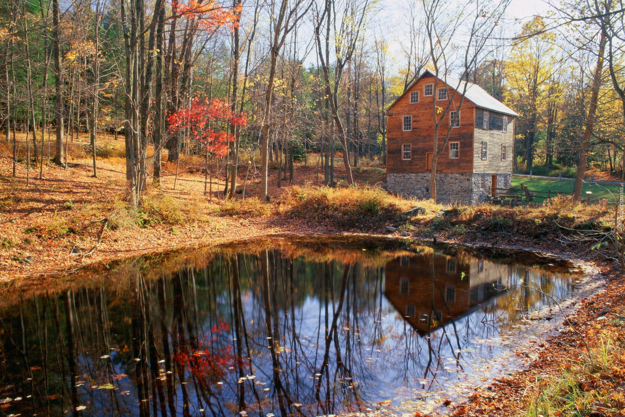 Edytor tapety: Jesień, Dom, Las, Staw