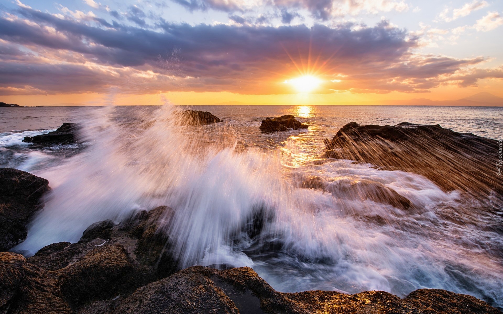 Edytor tapety: Morze, Fale, Wschód, Słońca