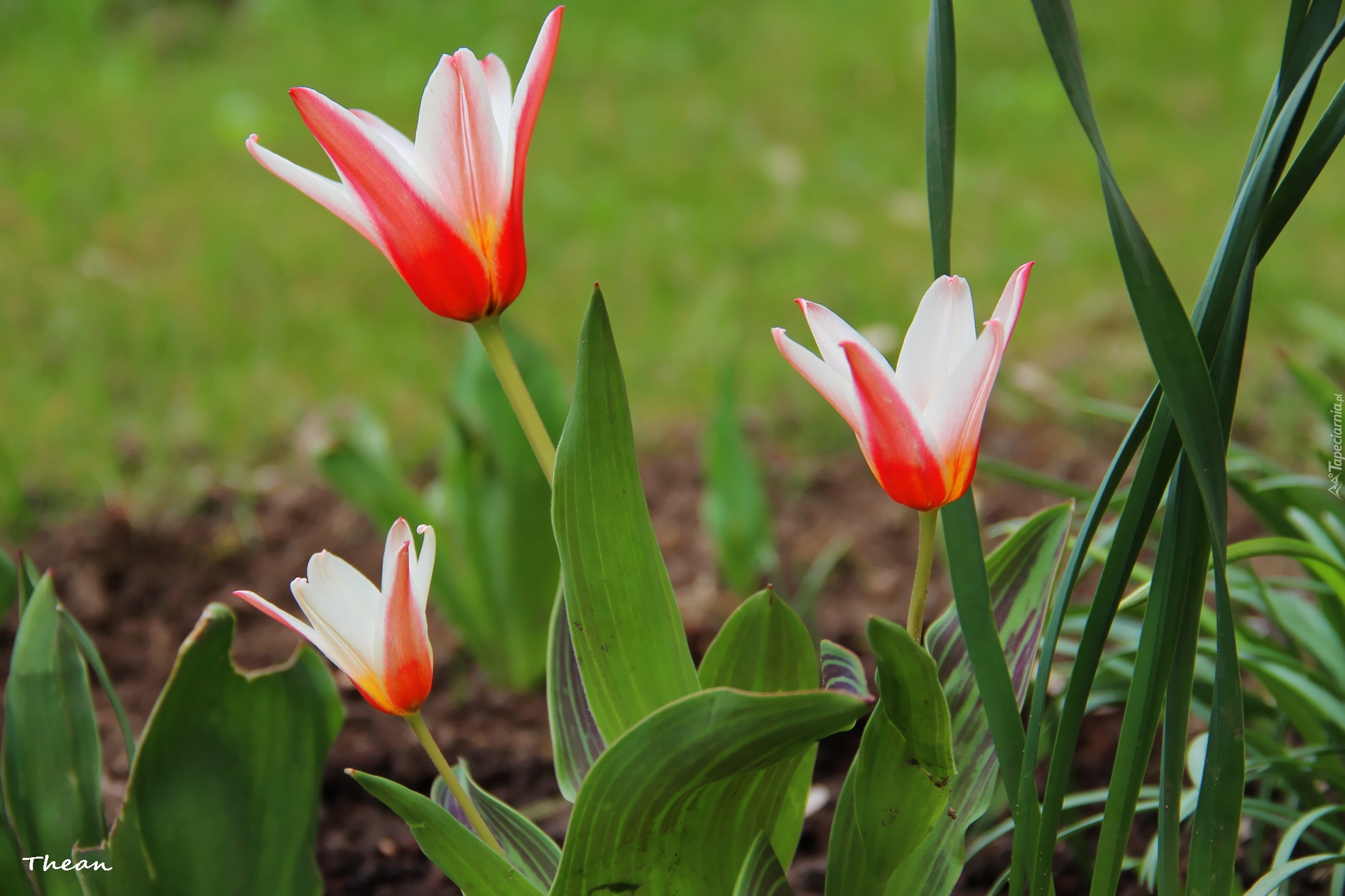 Edytor tapety: Tulipany, Biało, Czerwone