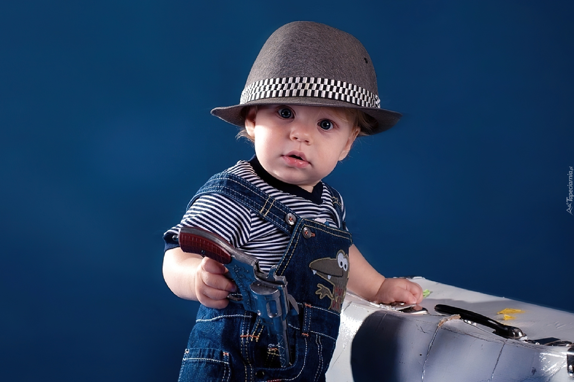 Edytor tapety: Mały, Chłopczyk, Kapelusz, Walizka