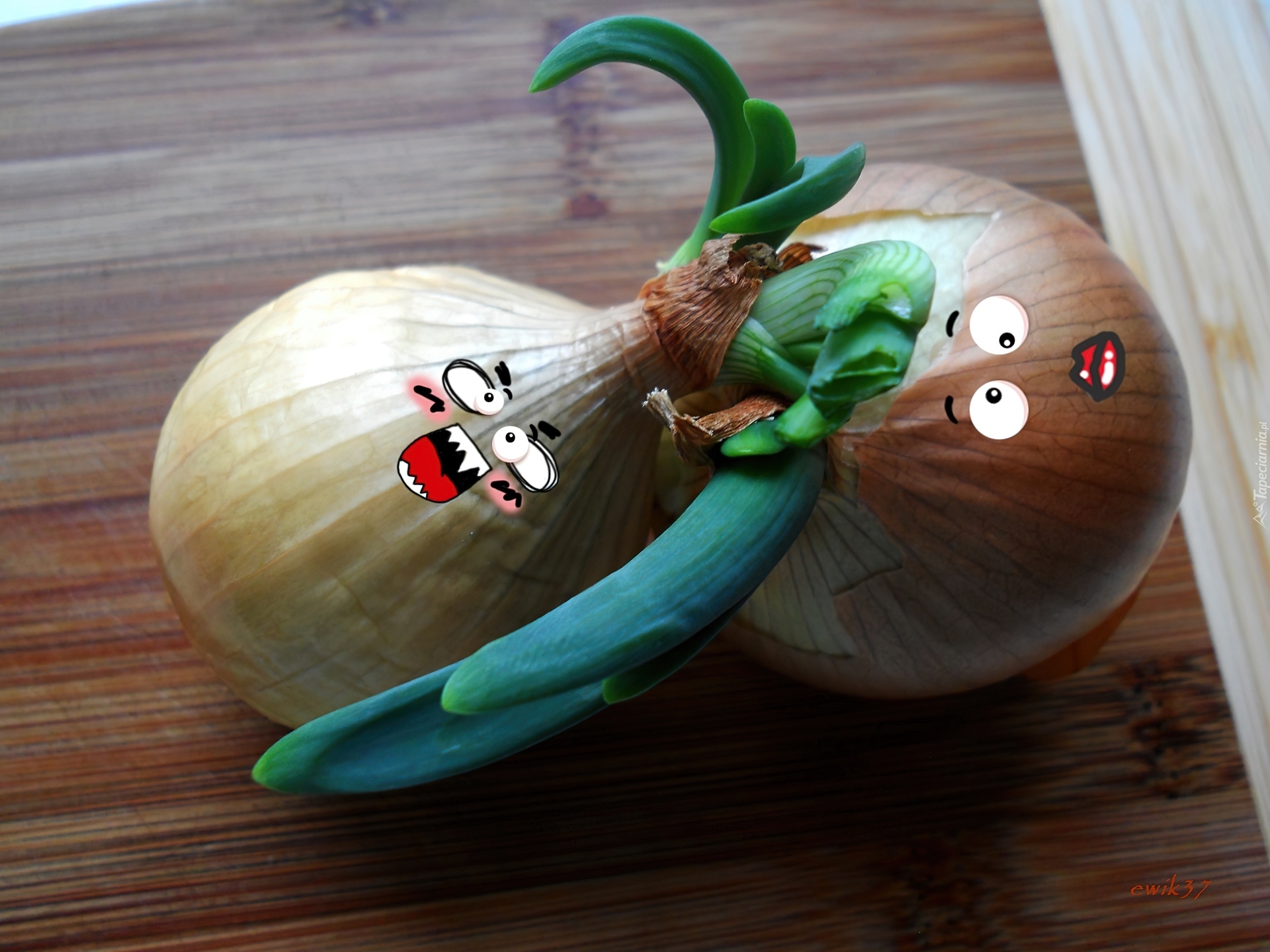 Edytor tapety: Cebulki, Zakręcone, Zielonym, Szczypiorem, Zabawne, Miny