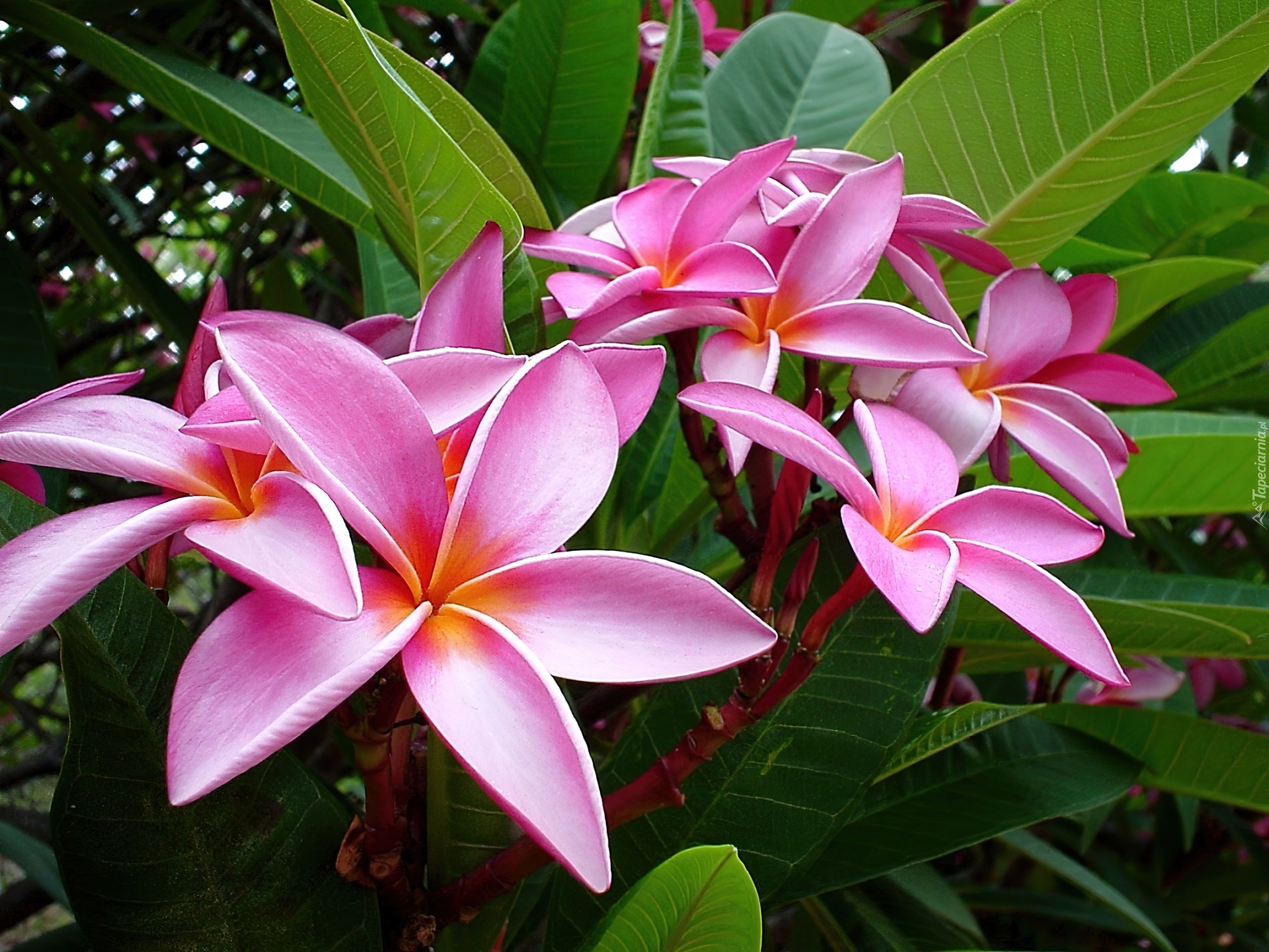 Edytor tapety: Różowa, Plumeria, Liście