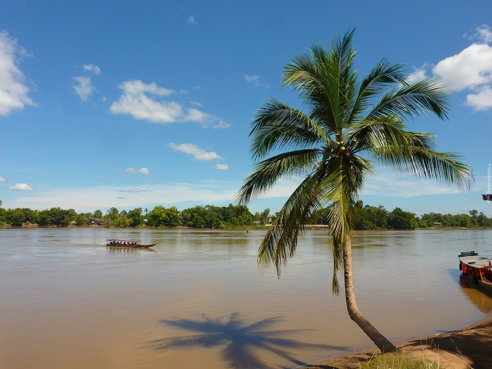 Edytor tapety: Rzeka, Amazonka, Brzeg, Palma, Brazylia