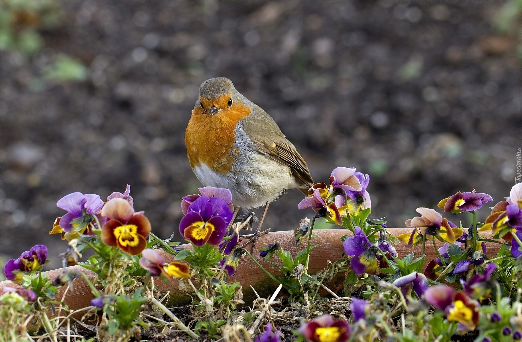 Edytor tapety: Bratki, Ptak, Rudzik
