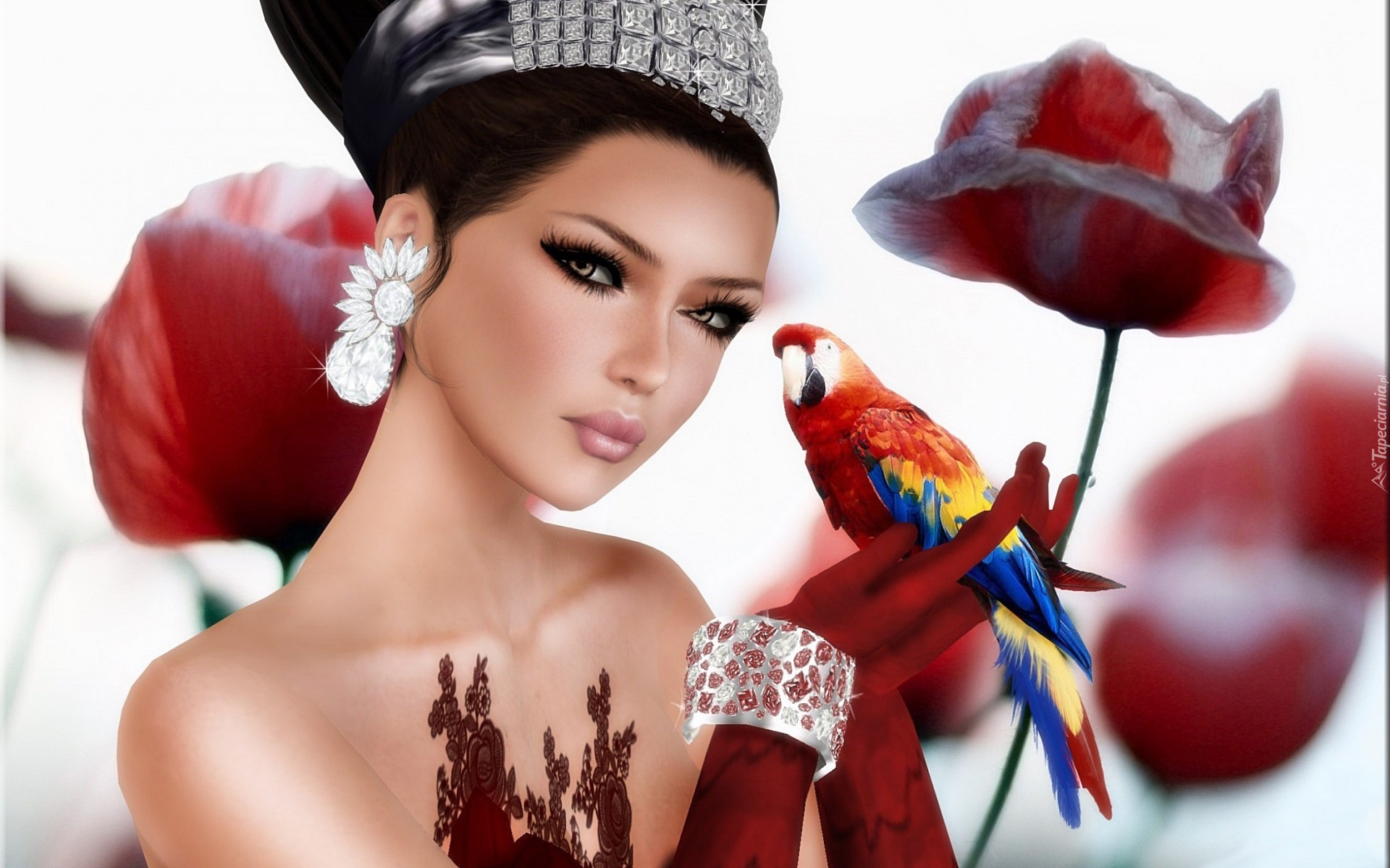 Edytor tapety: Kobieta, Biżuteria, Papuga, Ara