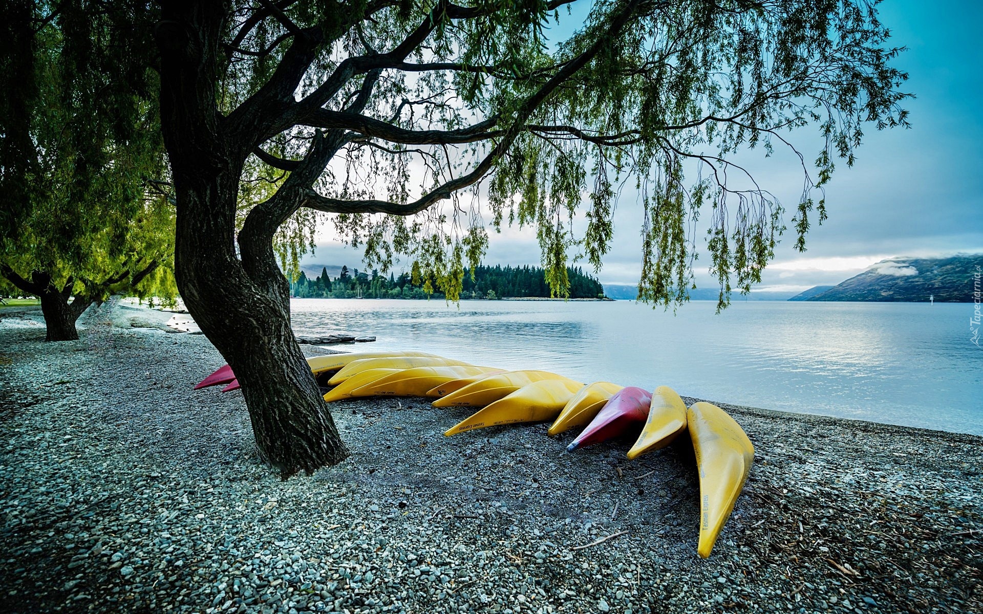 Edytor tapety: Jezioro, Drzewo, Łódki