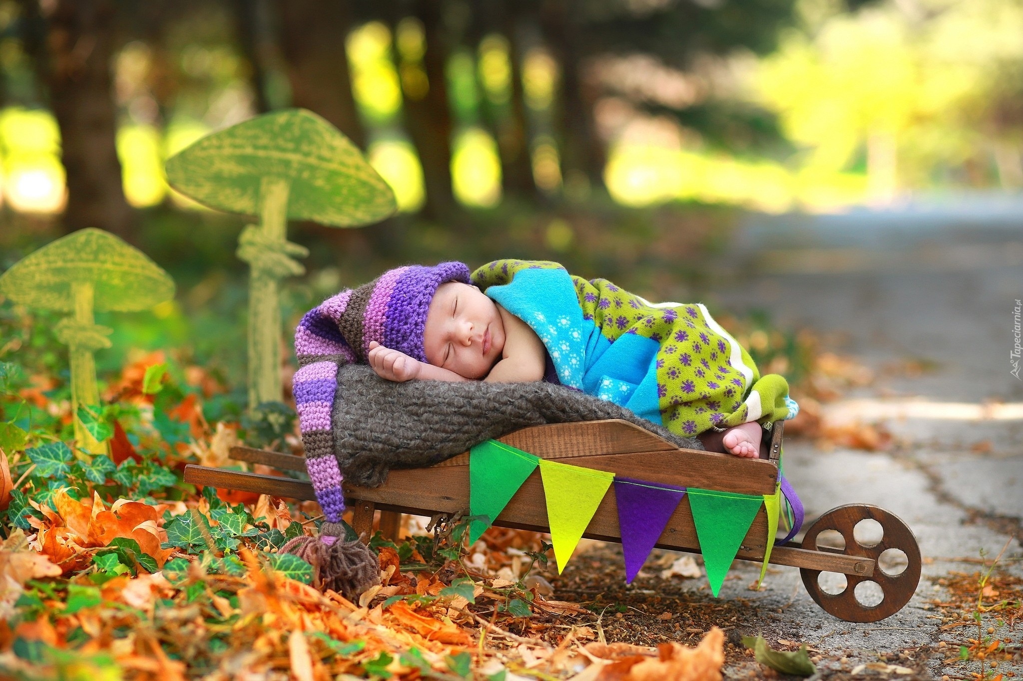 Edytor tapety: Śpiące, Niemowle, Taczka