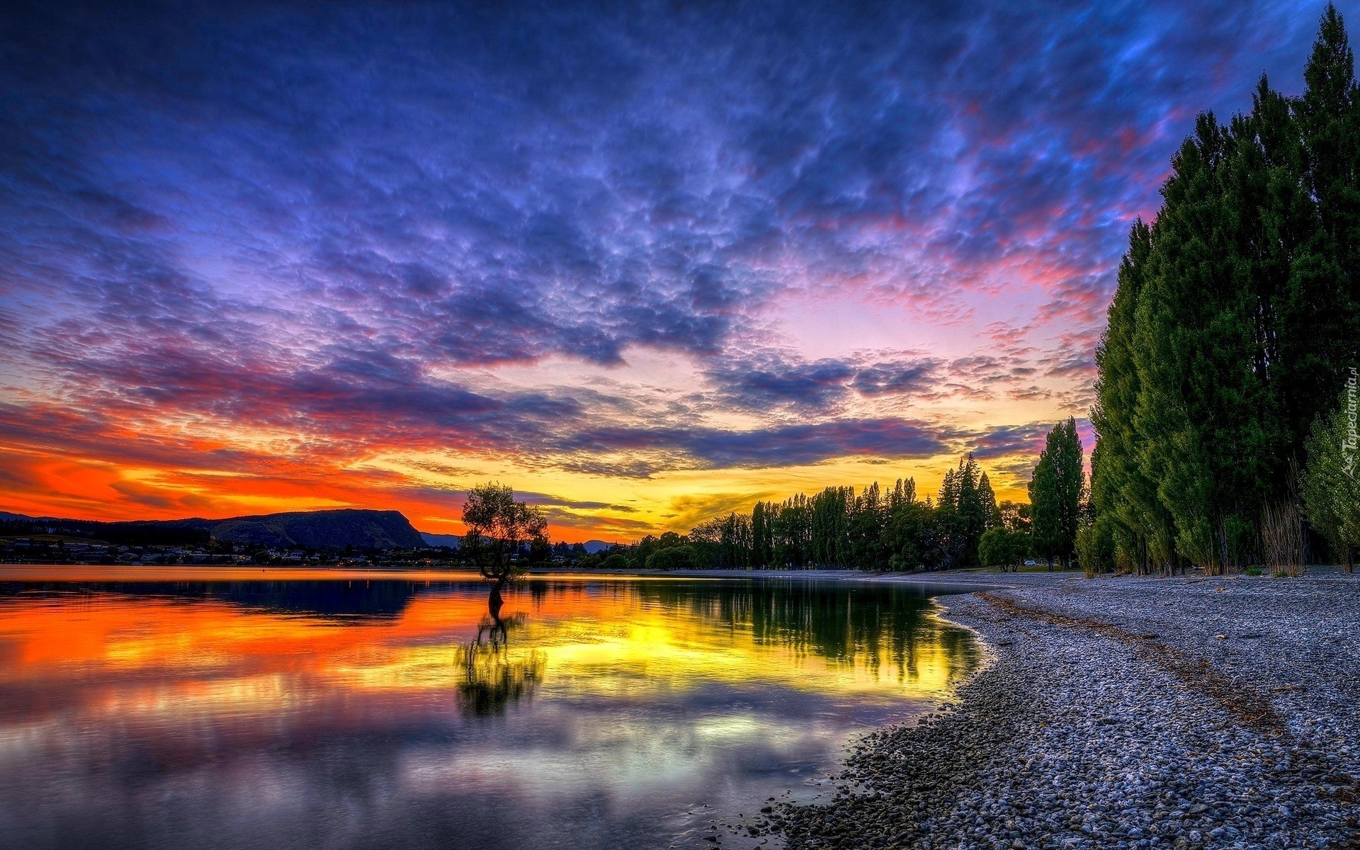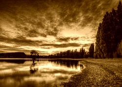 Edytor tapety: Jezioro, Las, Zachód, Słońca