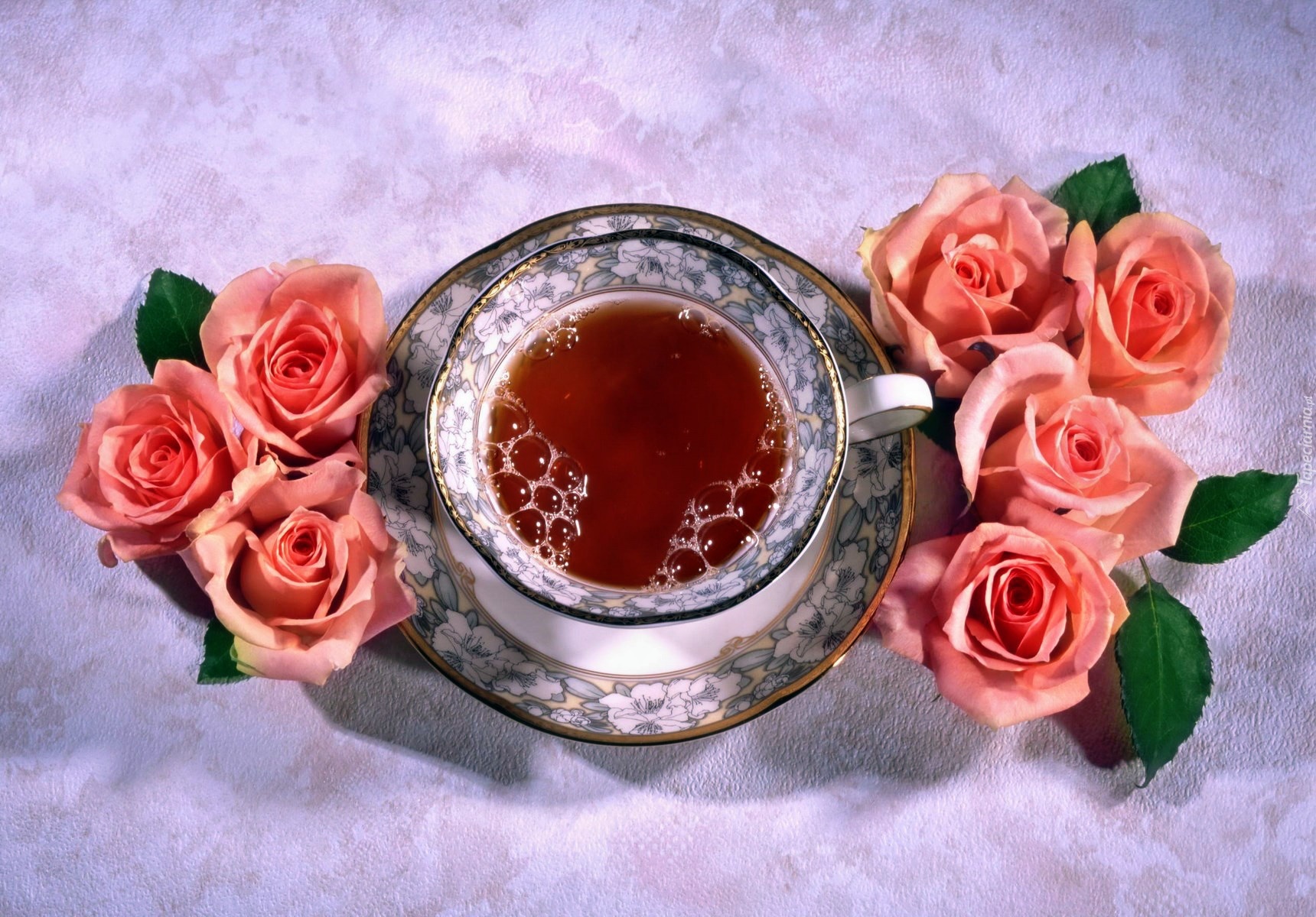 Edytor tapety: Herbata, Filiżanka, Różyczki