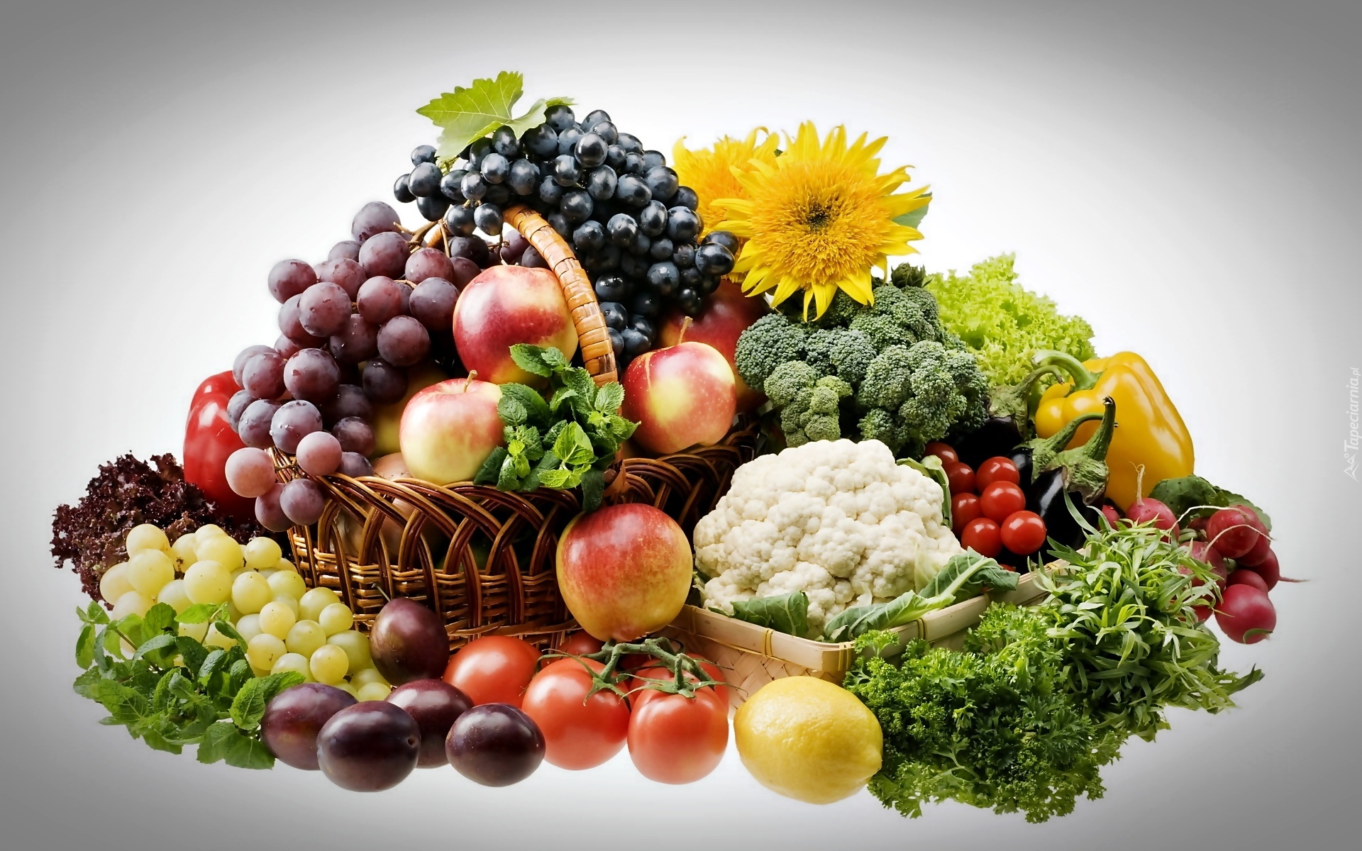 Edytor tapety: Owoce, Warzywa, Kwiaty, Jabłka, Winogrona, Śliwki
