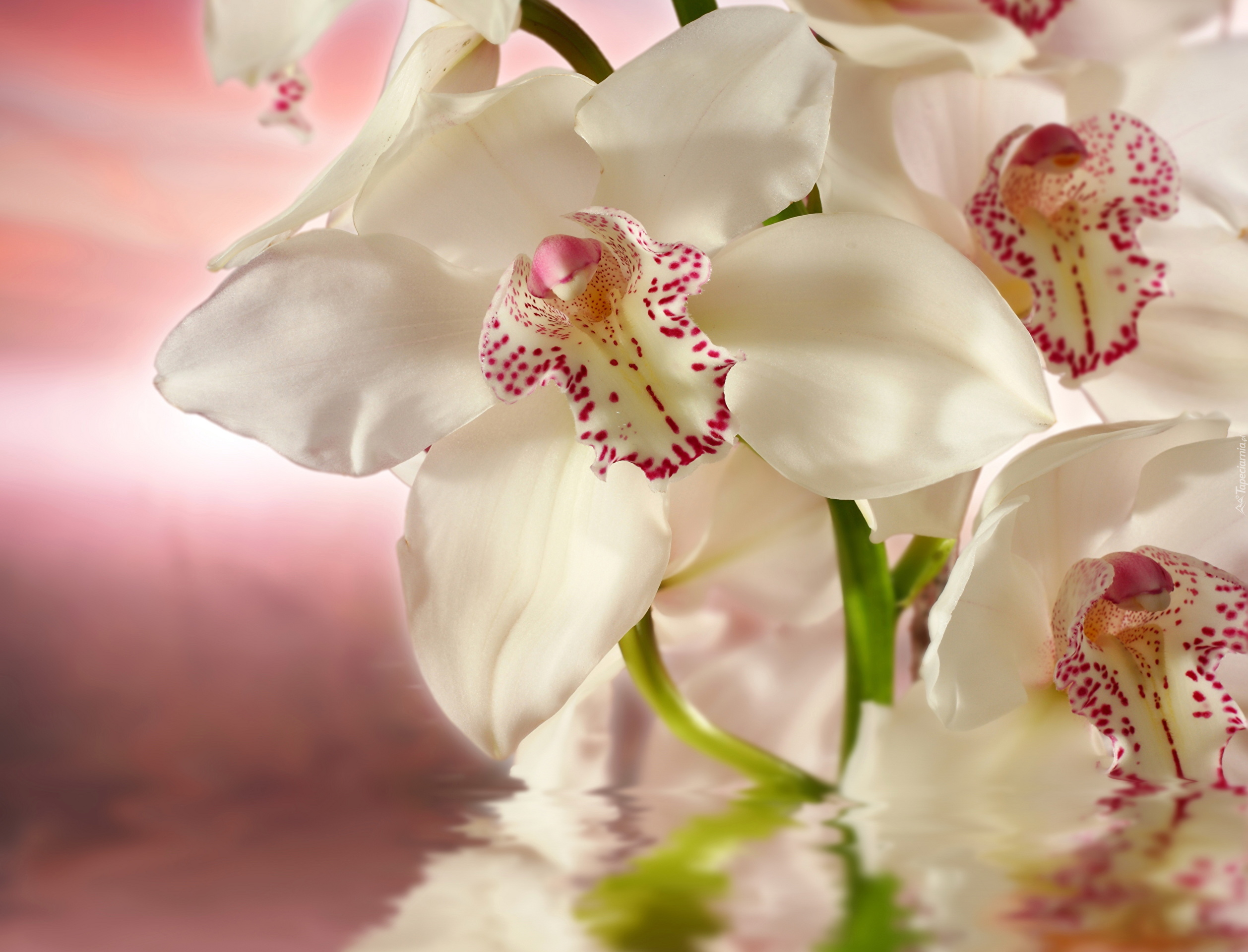 Edytor tapety: Biała, Orchidea, Woda, Rozmycie
