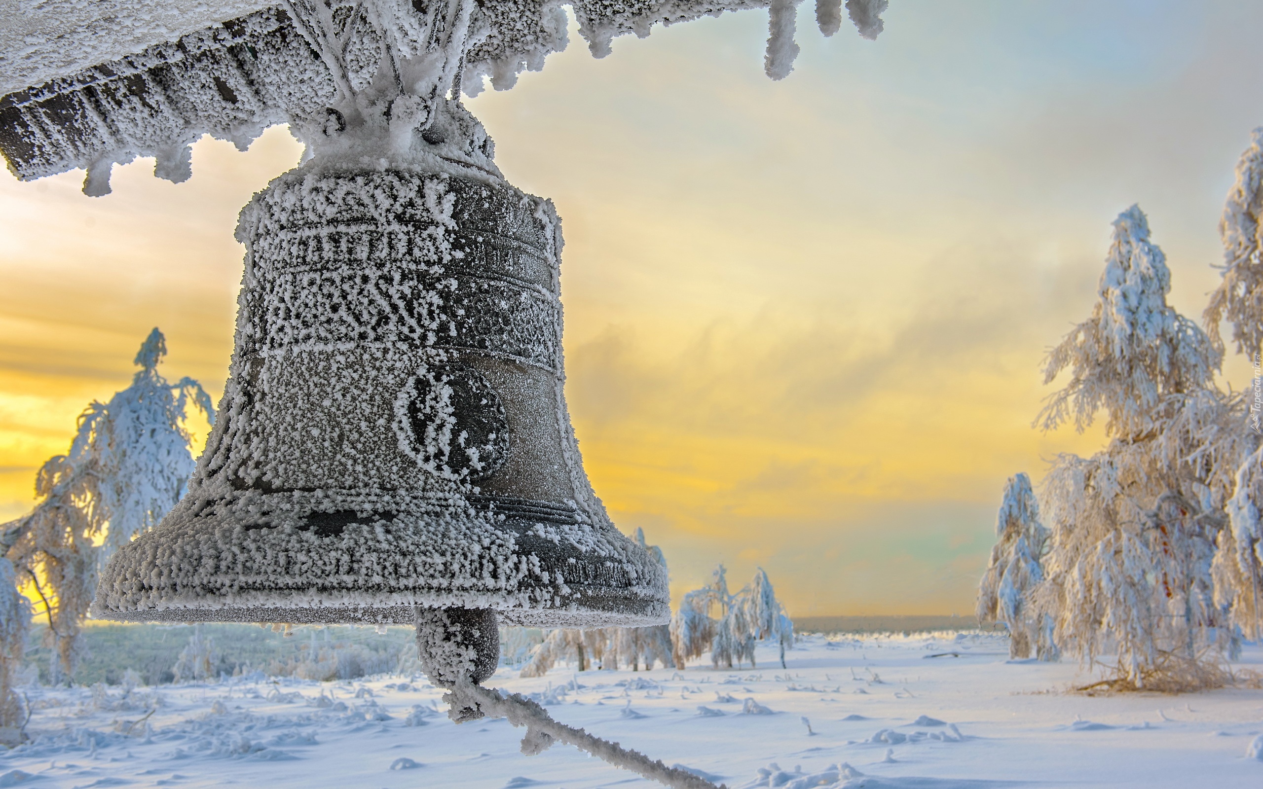 Edytor tapety: Zachód, Słońca, Dzwon, Śnieg, Zima