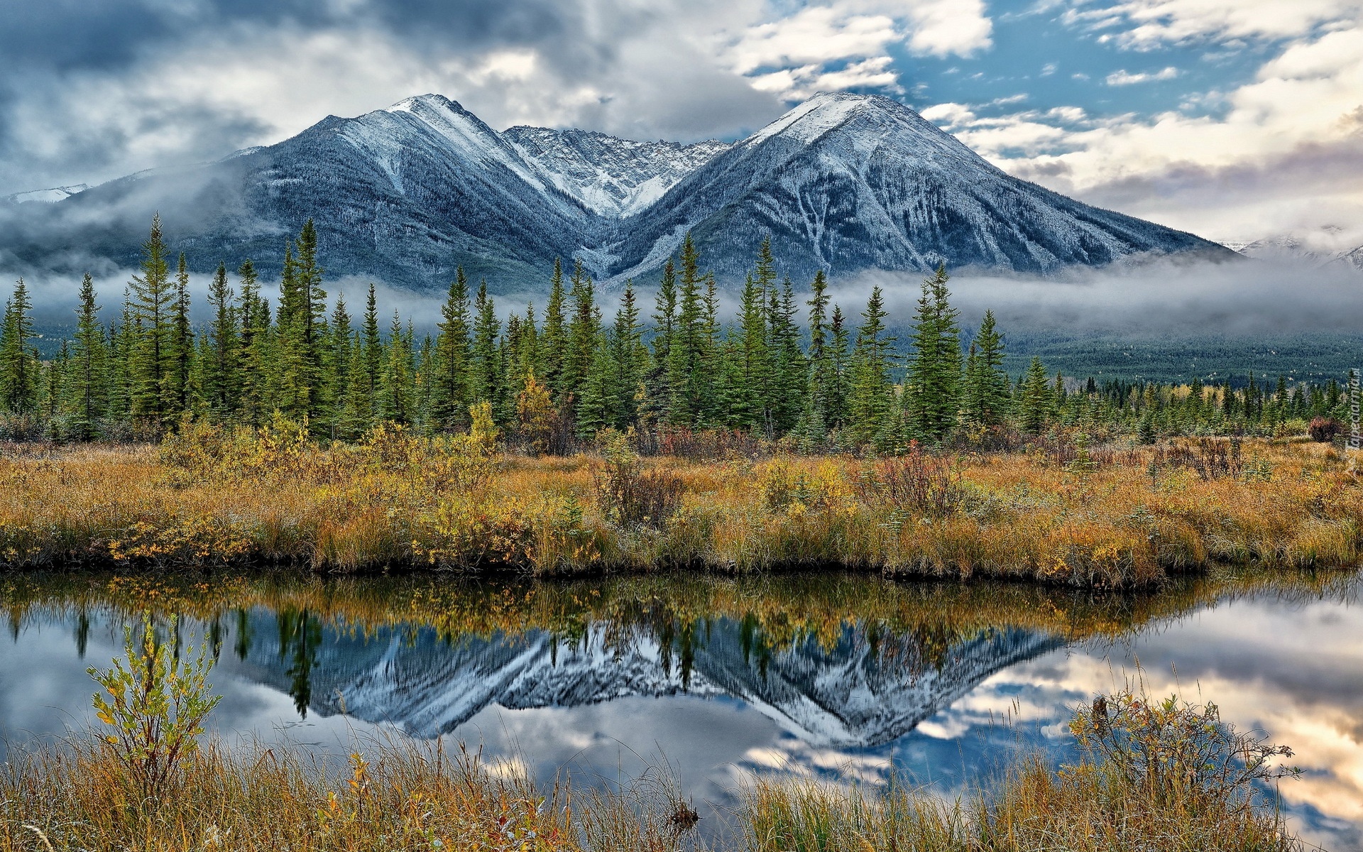 Edytor tapety: Góry, Drzewa, Rzeka