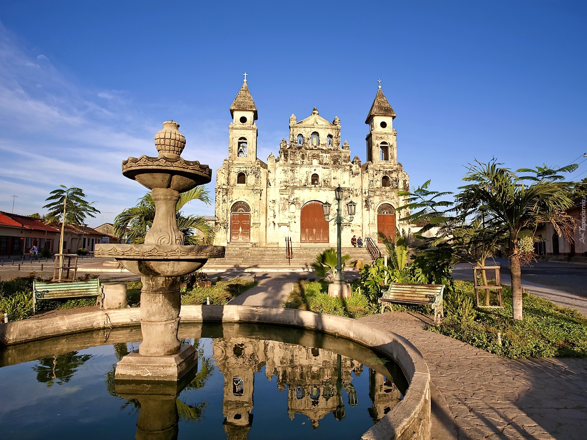 Edytor tapety: Nikaragua, Granada, Kościół, Guadalupe, Fontanna, Odbicie