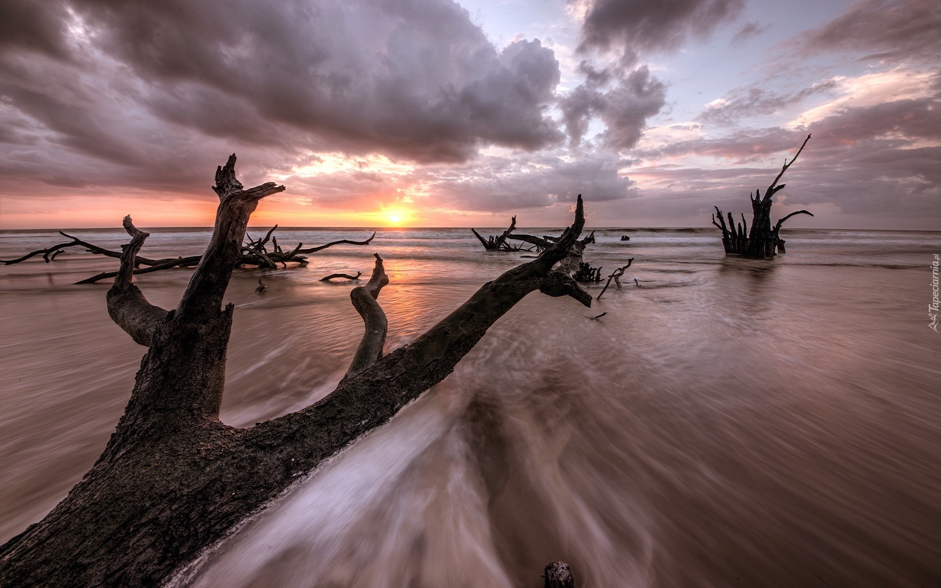 Edytor tapety: Zachód, Słońca, Morze, Konary, Drzew