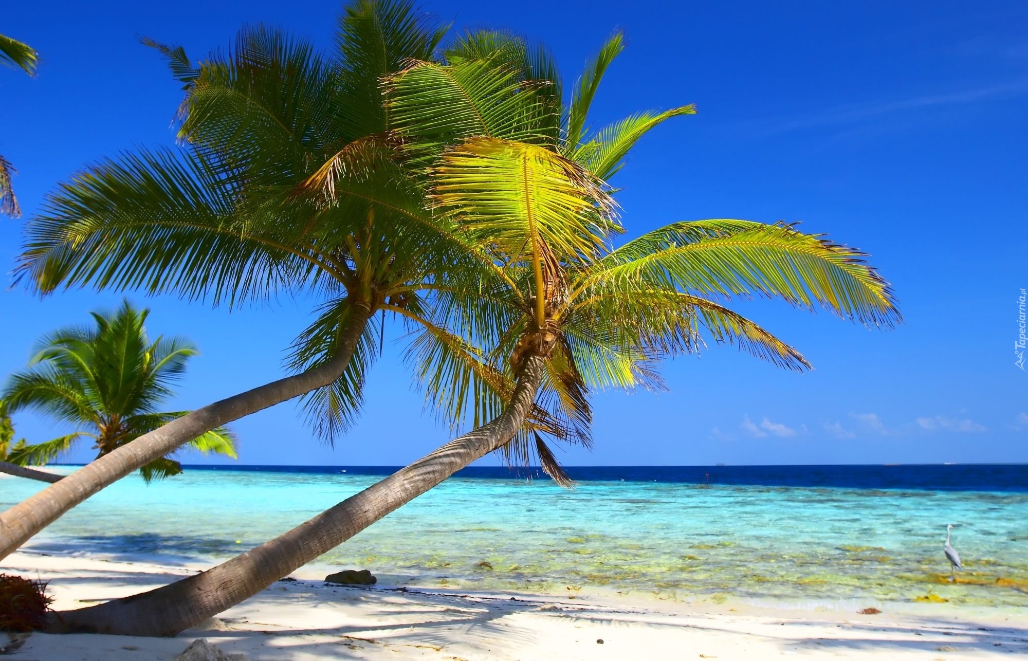 Edytor tapety: Pochyłe, Palmy, Kokosowe, Niebo, Plaża